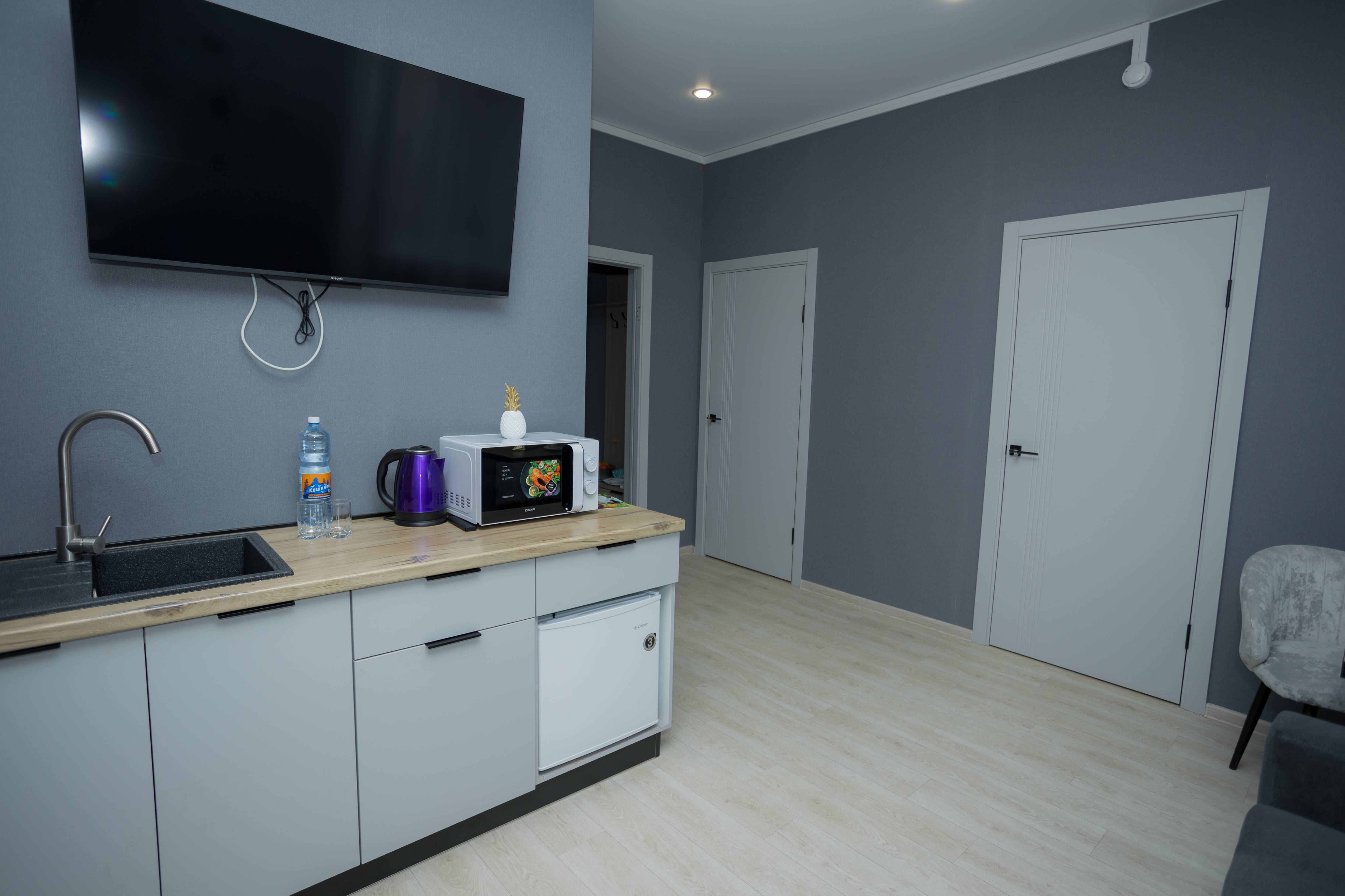 кондиционер: ; микроволновая печь: ; мини-холодильник: ; набор посуды: ; телевизор: ; электрочайник: ;