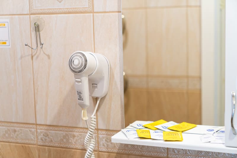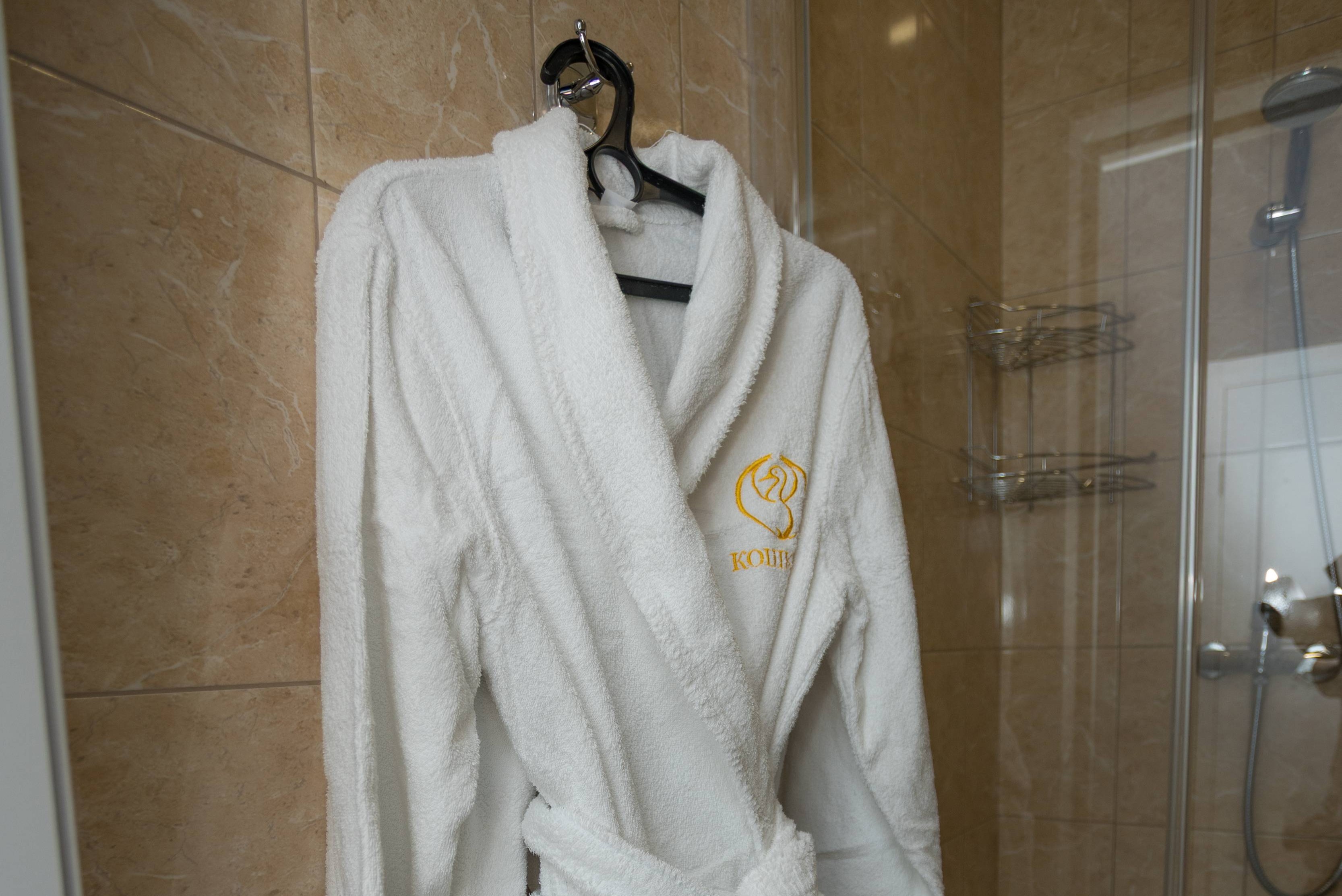 с ванной: ; тапочки: ; туалетные принадлежности: ; фен: ; халат: ;