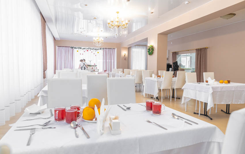 Комплексное питание, организованное в просторном зале столовой, сбалансировано с учетом лечебно-профилактических назначений и диет. В меню - русская кухня, блюда отличаются домашним вкусом и оригинальной подачей. Для проведения торжеств предусмотрено два банкетных зала различной вместимости.