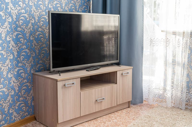 мини-холодильник: ; телевизор: ; чайный набор посуды: ;
