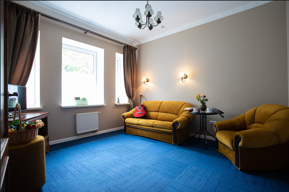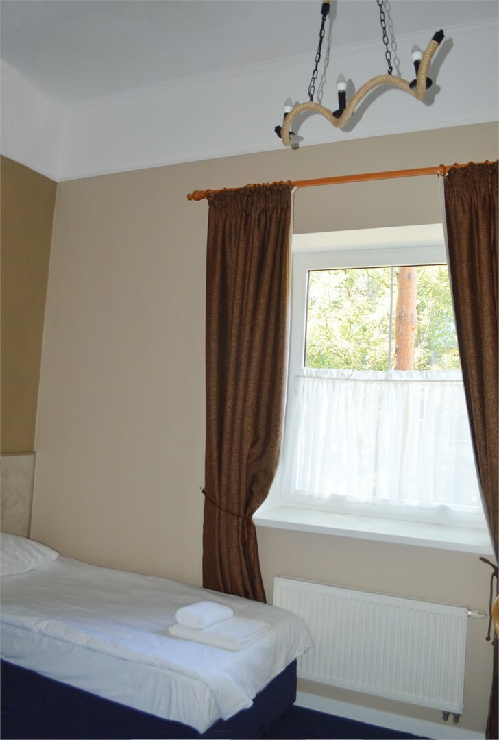Четырехэтажное здание гостиницы с мансардой, без лифта. Способно одновременно принять до 26 человек. Отдыхающим предлагаются двухместные номера с ванной или душем категории Стандарт, Полулюкс и Люкс. В каждом номере есть мини-холодильнк, телевизор и косметические принадлежности.