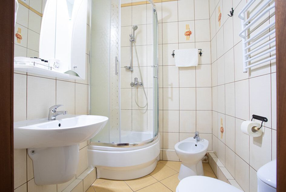 с душевой кабиной: ; тапочки: ; туалетные принадлежности: ; фен: ;