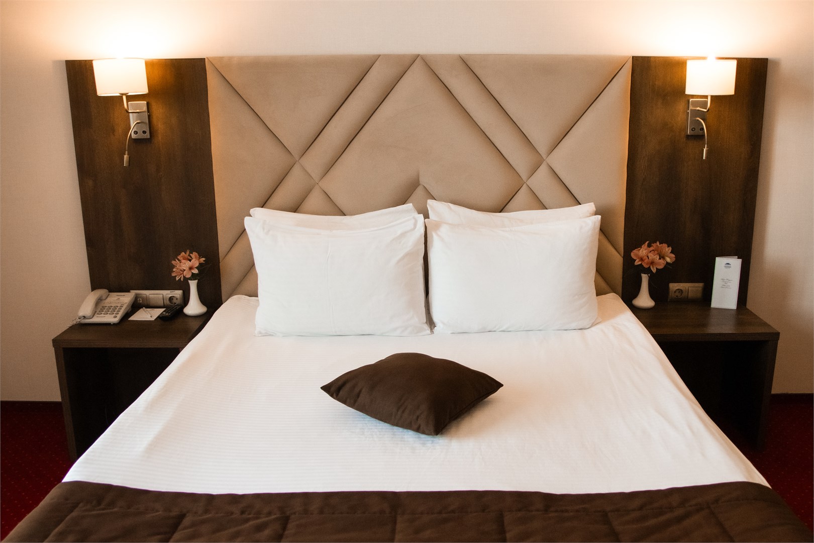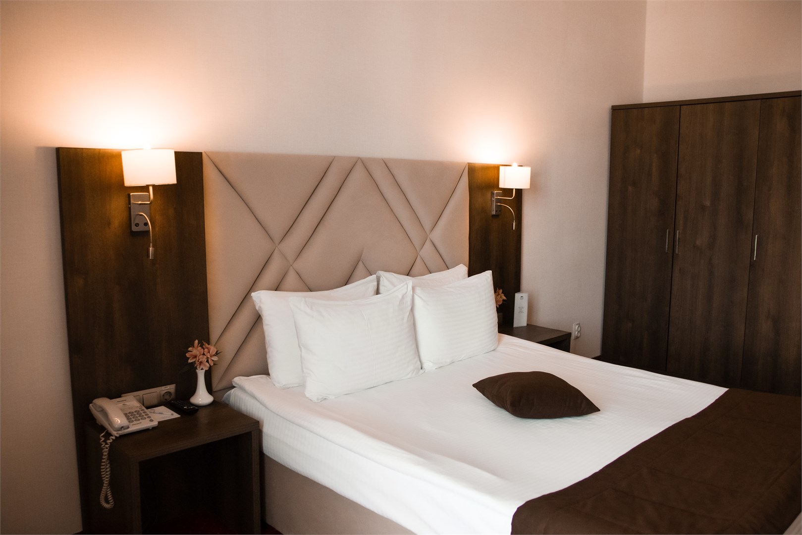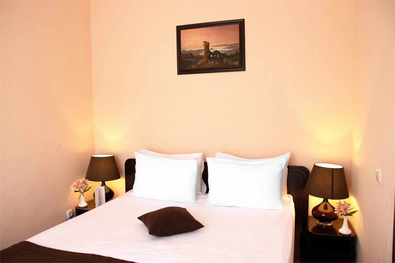 - Standart. 2-местный 1-комнатный с одной двуспальной кроватью. Осн. мест: 2. Доп. мест: 1.