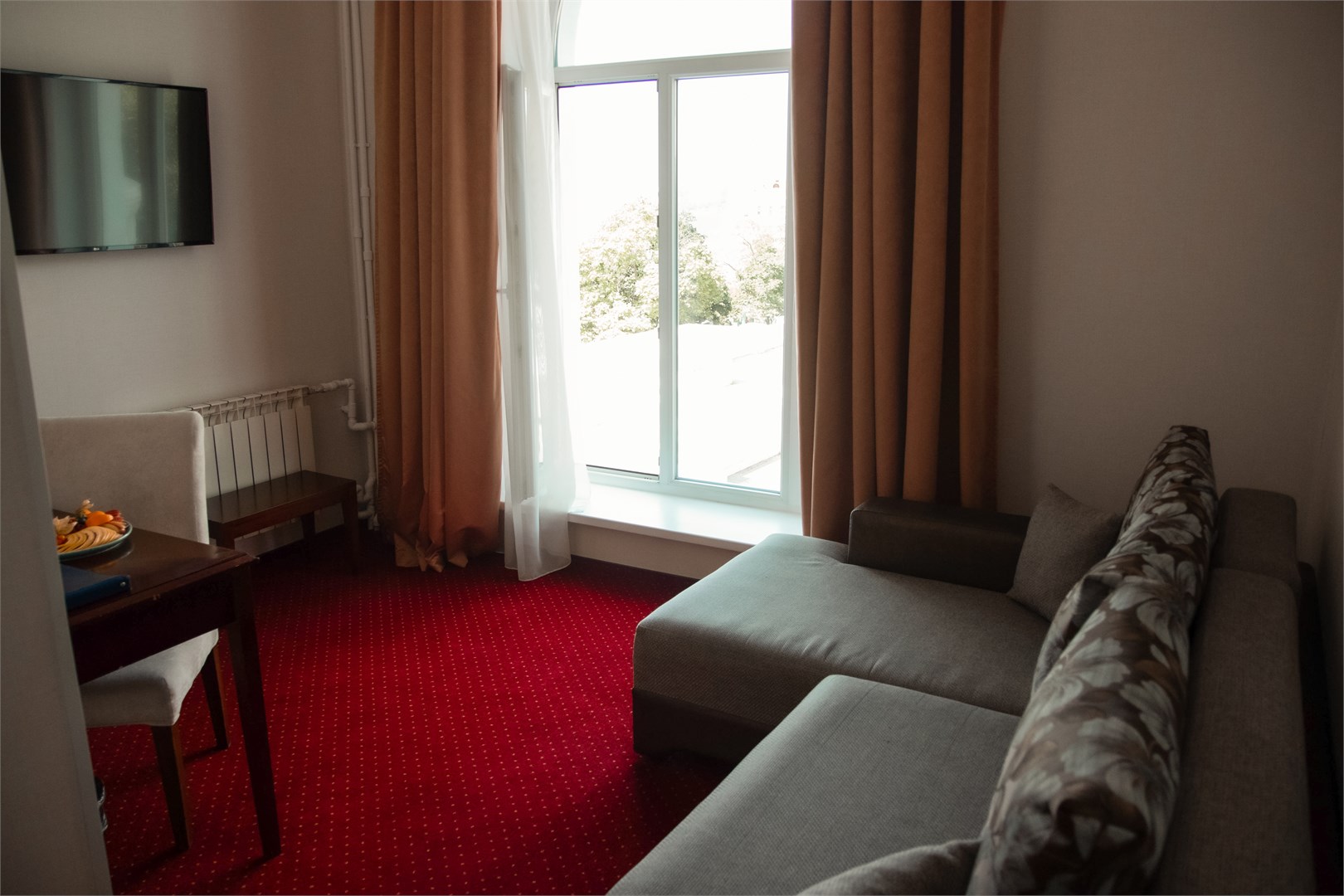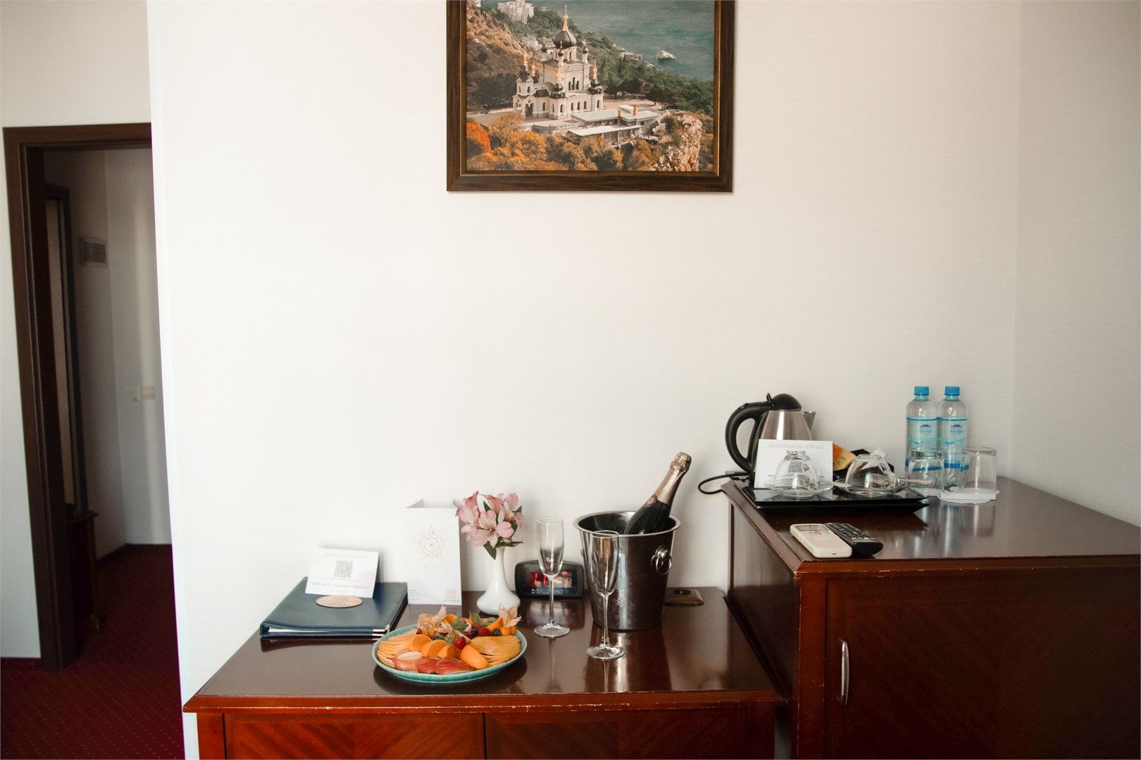 номер расположен на 2-м этаже отеля, с видом на Артиллерийскую Бухту. В номере есть кухонная зона