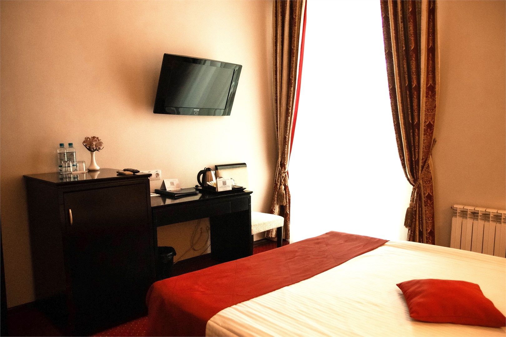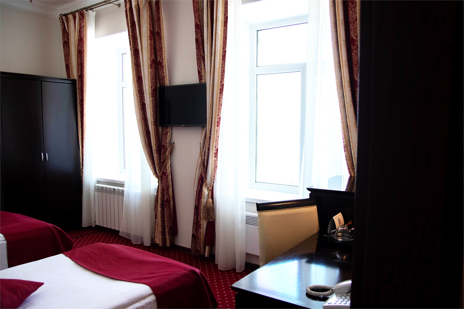 - Стандарт. 2-местный 1-комнатный с двумя односпальными кроватями и видом на театр и море. Площадь: 20. Осн. мест: 2. Доп. мест: 0. Всего таких номеров: 11.