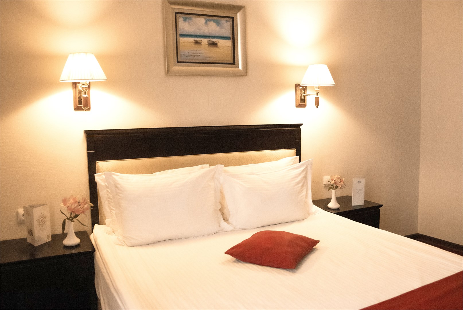 - Стандарт. 2-местный 1-комнатный с двуспальной кроватью и видом на театр и море. Площадь: 20. Осн. мест: 2. Доп. мест: 0. Всего таких номеров: 30.