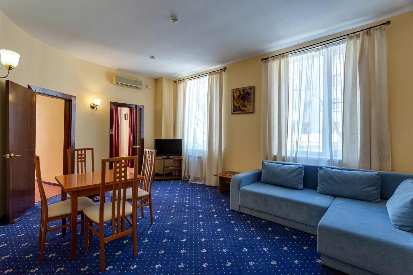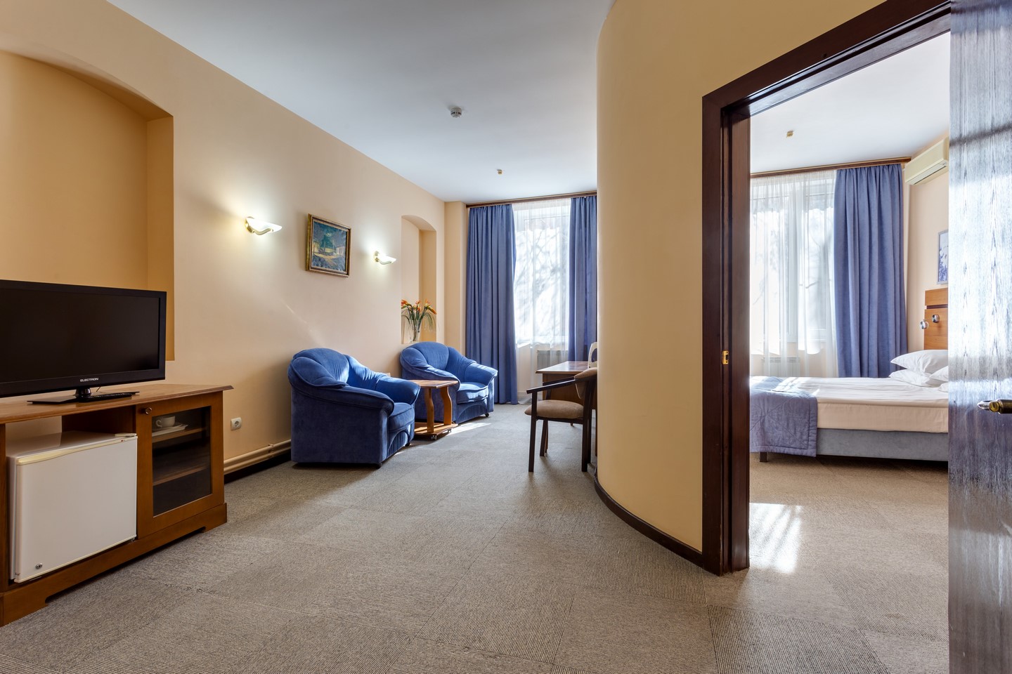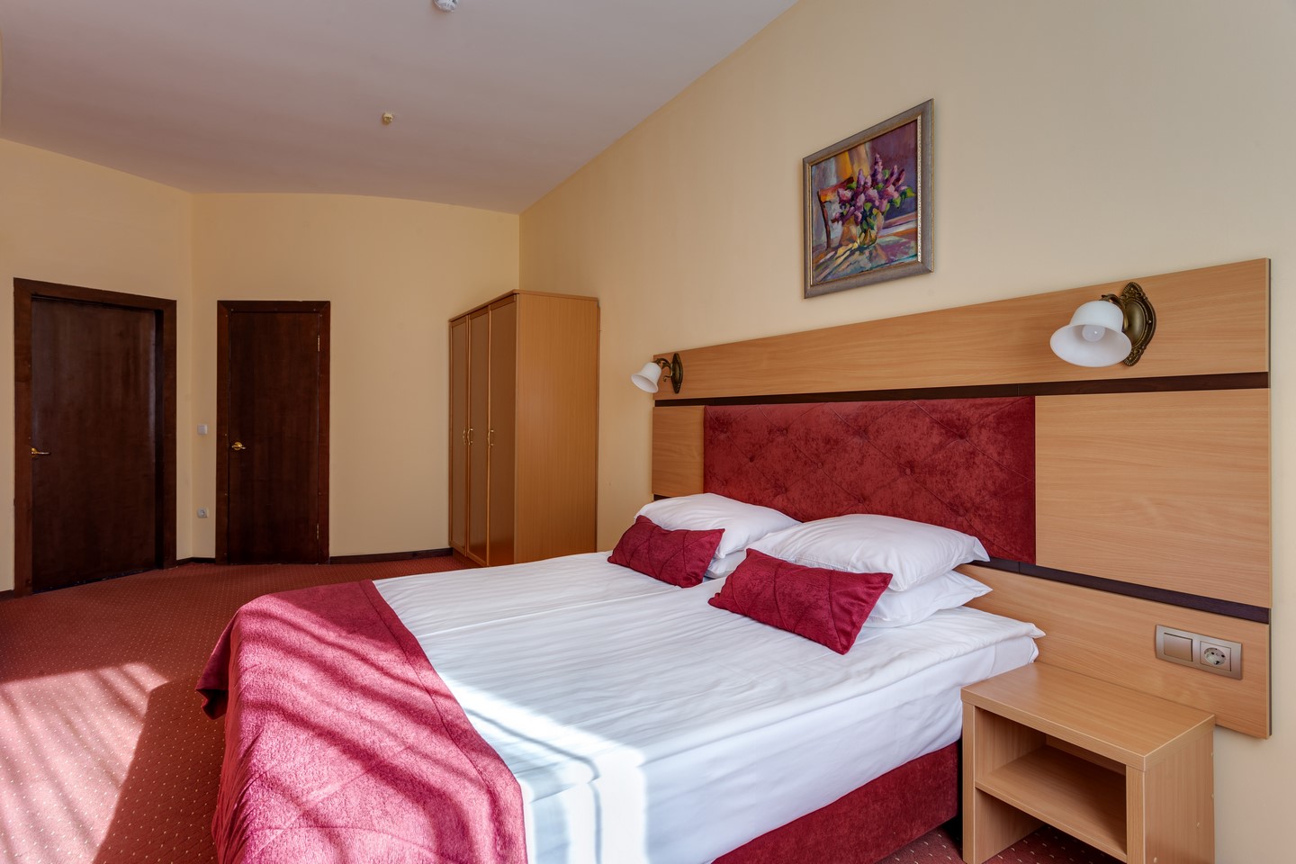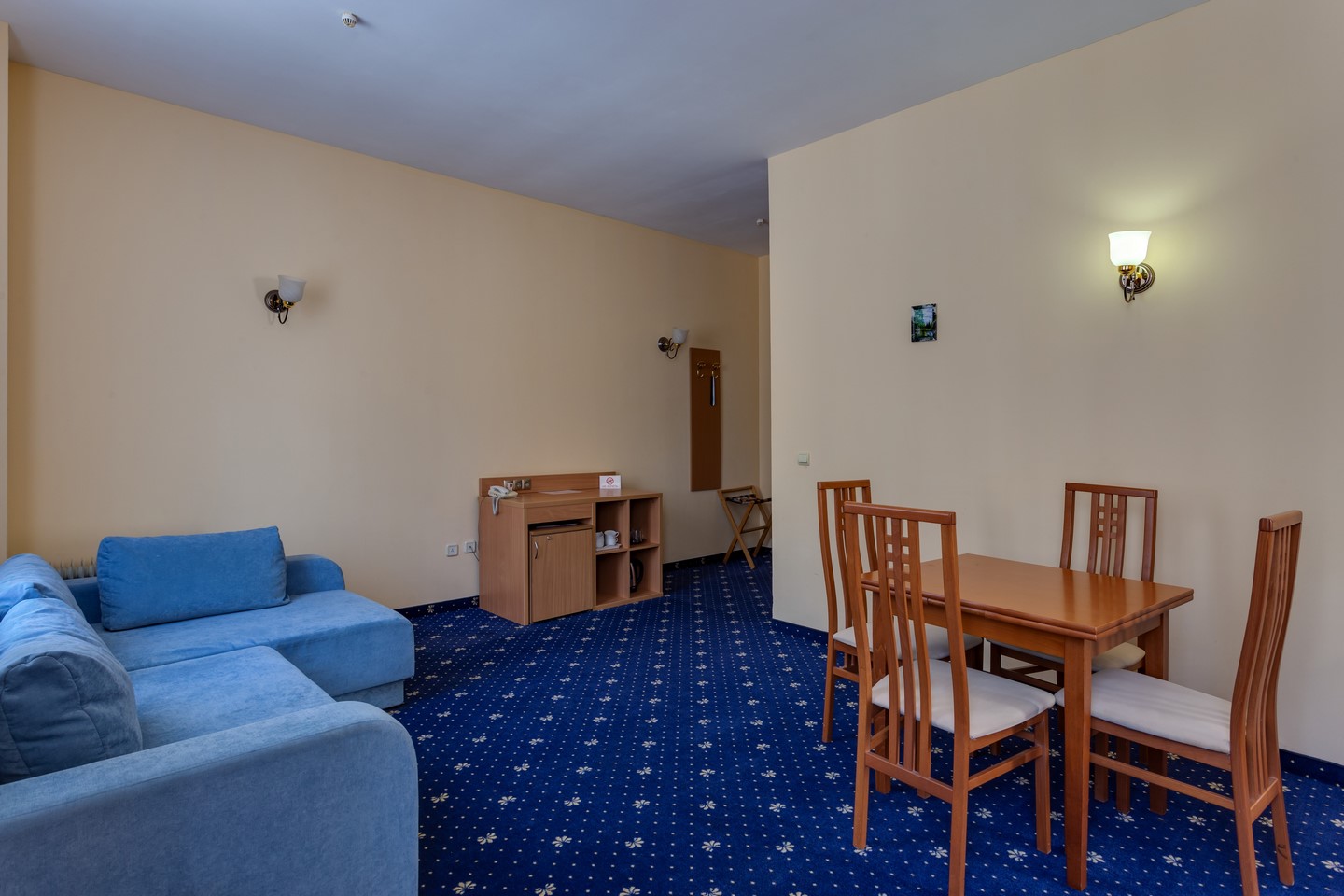 - Люкс. 2-местный 2-комнатный. Площадь: 35-50. Осн. мест: 2. Доп. мест: 2. Всего таких номеров: 10. Каждый номер включает в себя: гостиную, гардероб, спальную комнату.