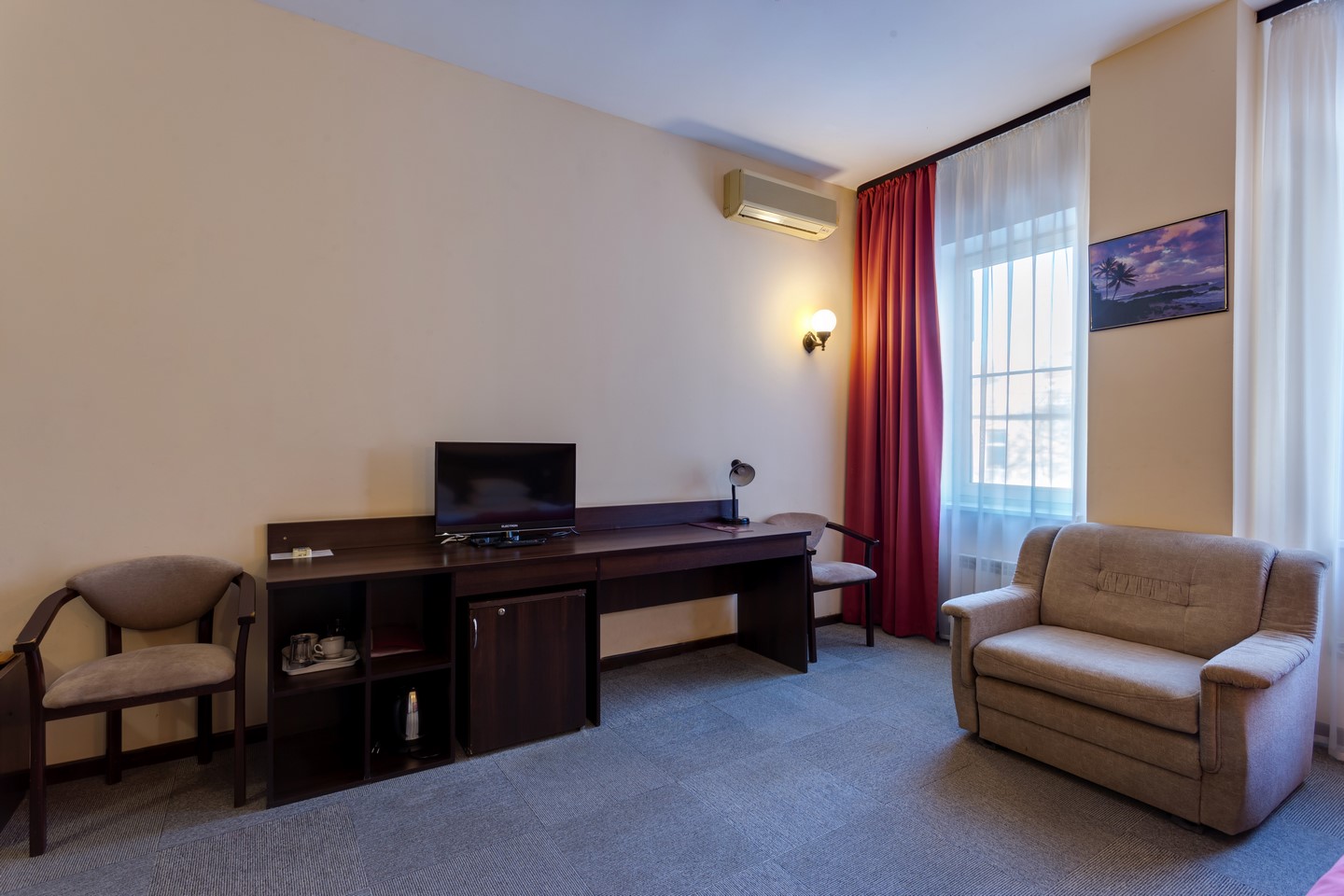 кондиционер; сейф; телевизор: кабельное; телефон; холодильник;