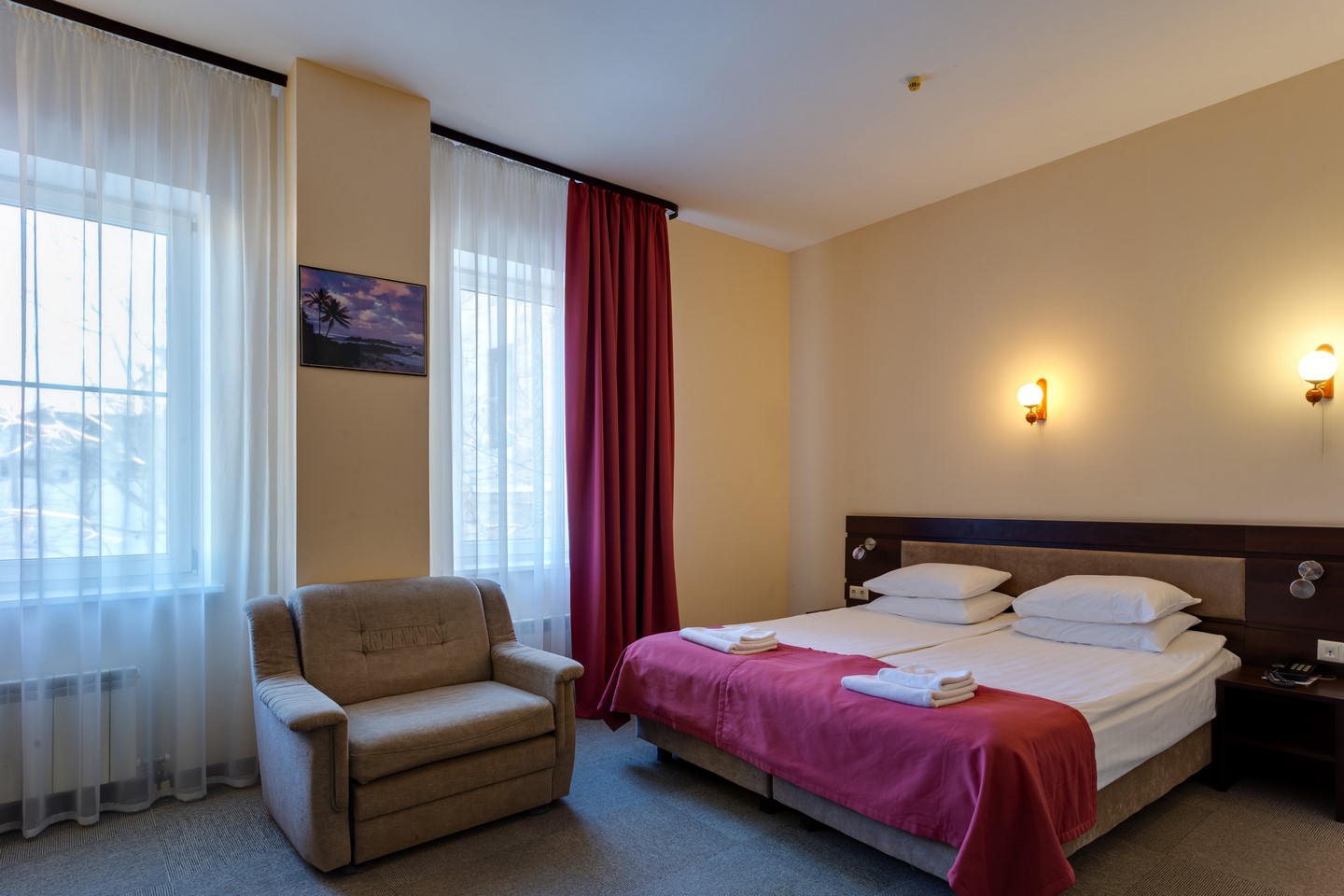- Стандартный. В 2-местный. Площадь: 24-30. Осн. мест: 2. Доп. мест: 1. Всего таких номеров: 6.