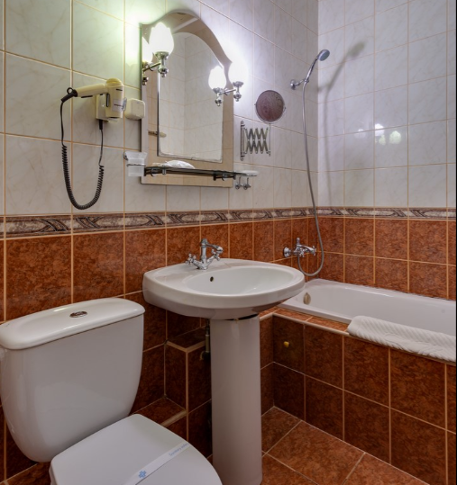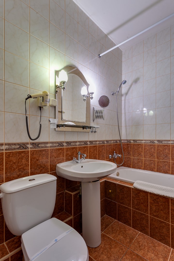 биде; с ванной; туалетные принадлежности; фен;