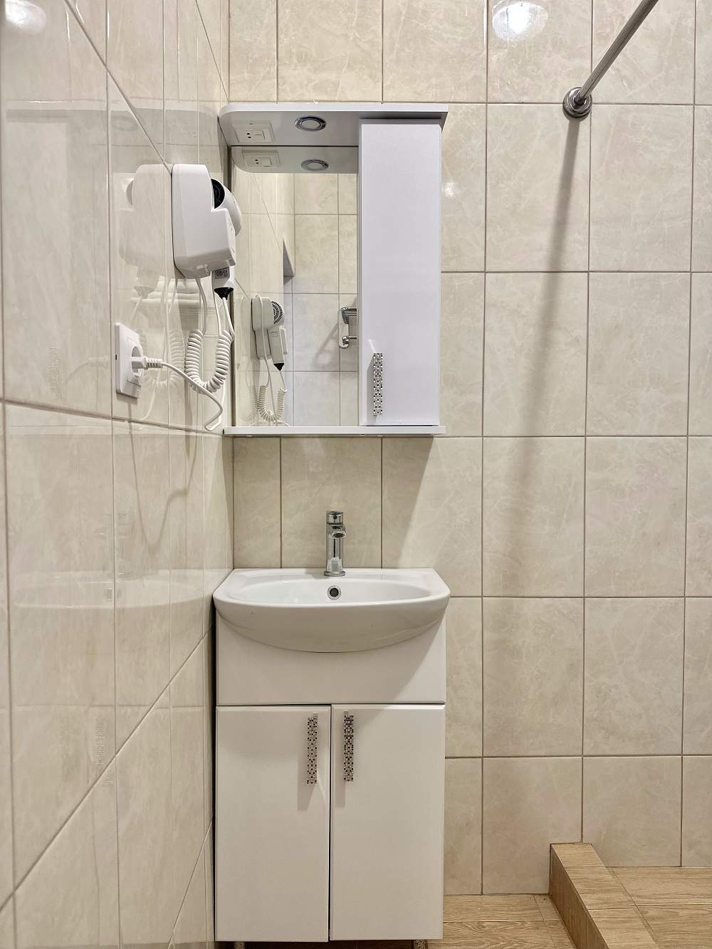 с душем: ; туалетные принадлежности: ;