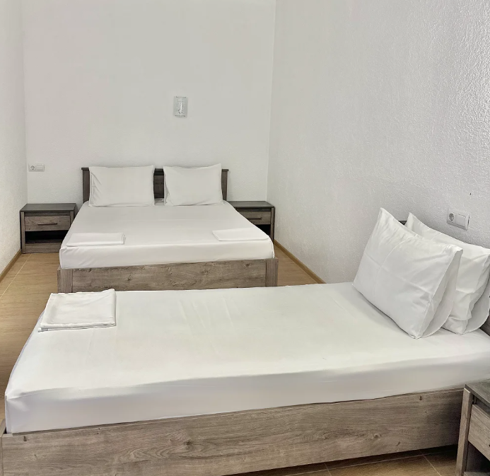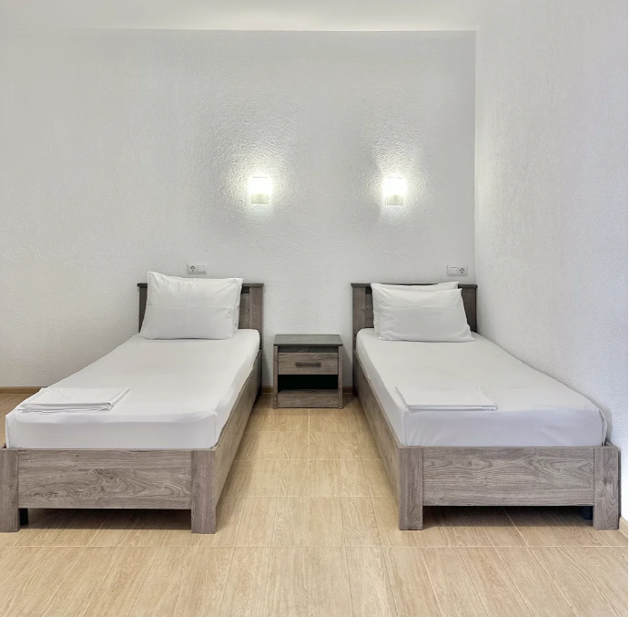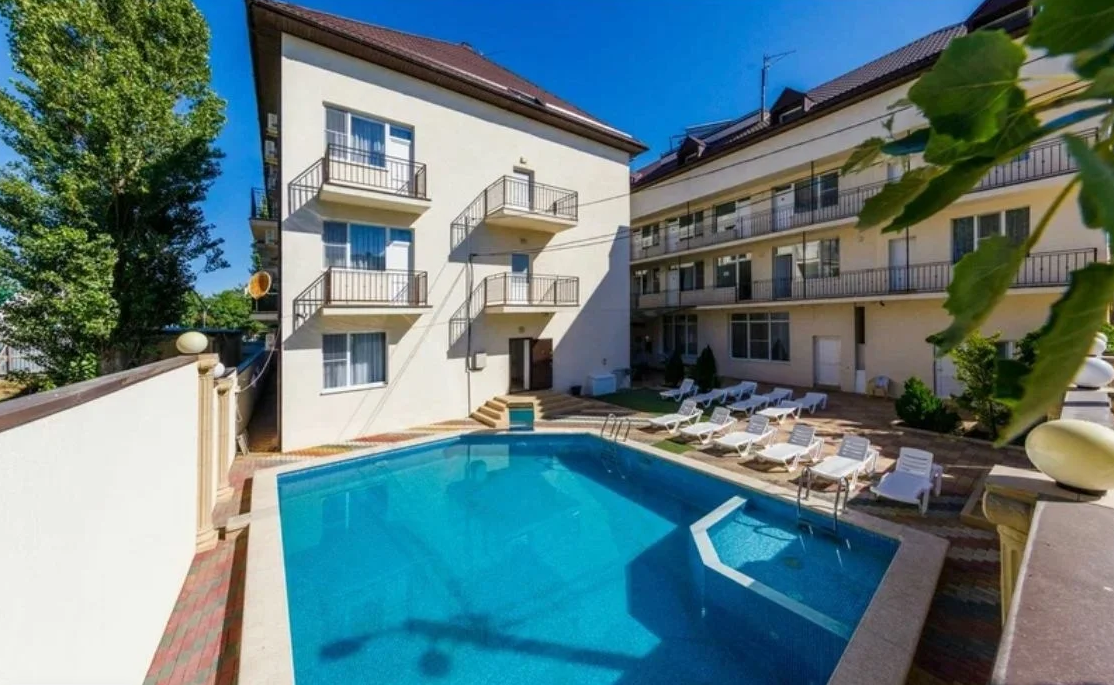 Гостевой дом, расположенный на первой береговой линии, состоит из двух трехэтажных жилых корпусов и отдельно стоящего здания столовой. Обширный номерной фонд рассчитан на единовременное заселение 180 человек. Гостей ожидают светлые и просторные номера Комфорт и Люкс. В каждом номере имеется собственный душ, кондиционер, телевизор и холодильник.