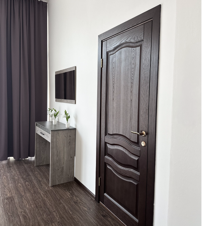 вешалка: ; диван: ; зеркало: ; кровати односпальные /одна двуспальная кровать: ; прикроватные тумбочки: ; столик журнальный: ; шкаф: ;