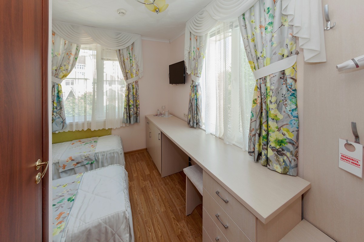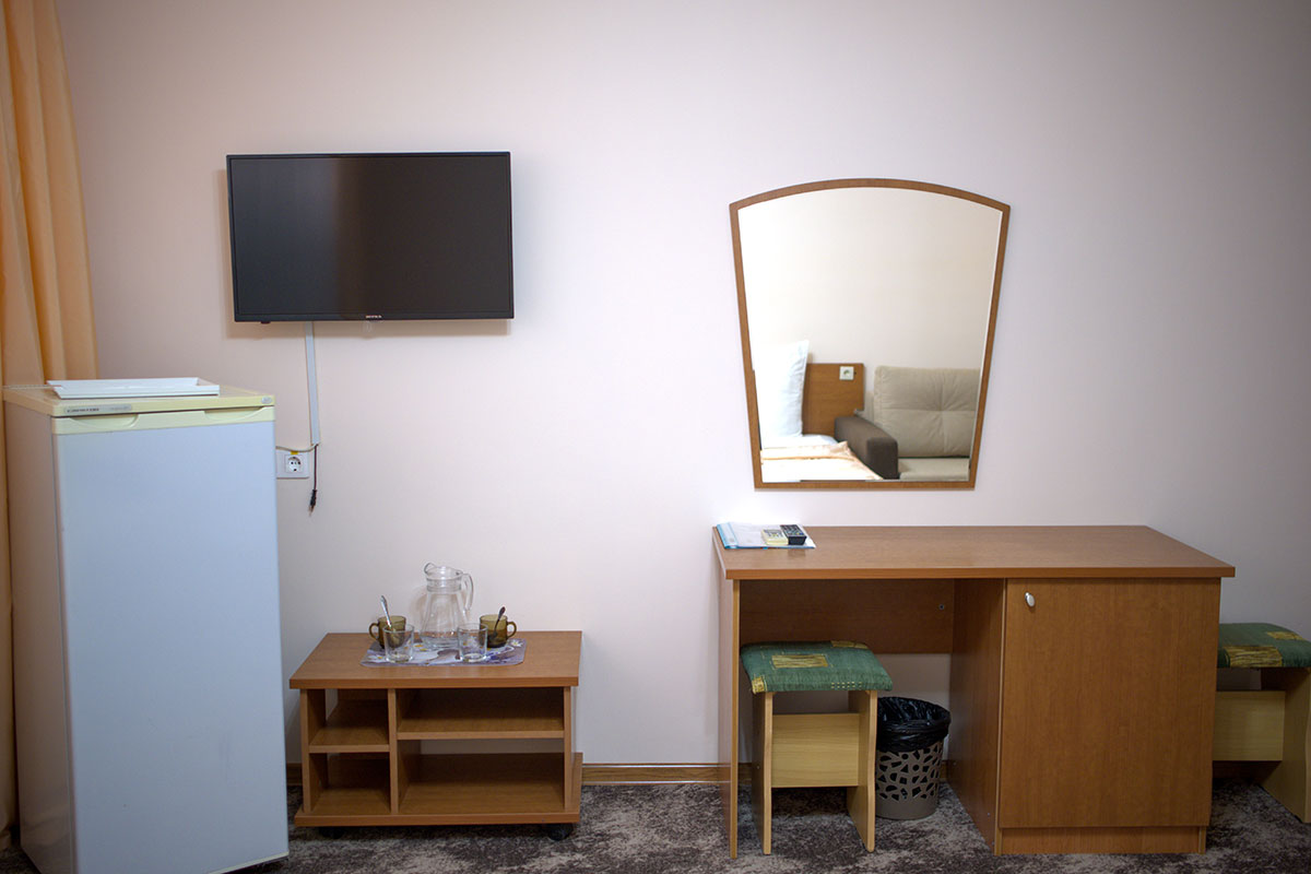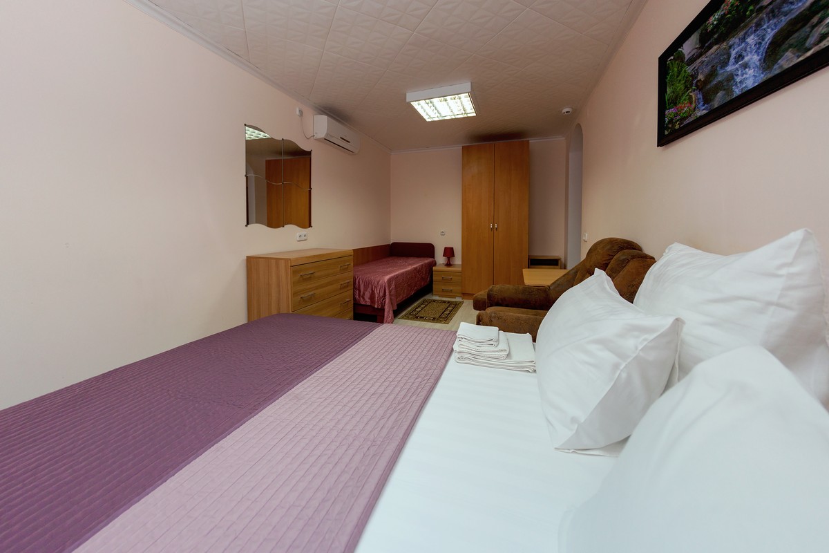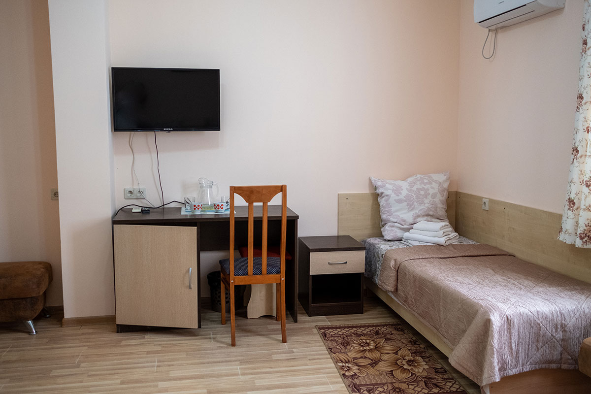 - Эконом. 1-местный . Площадь: 12. Осн. мест: 1. Доп. мест: 1. Всего таких номеров: 8.
