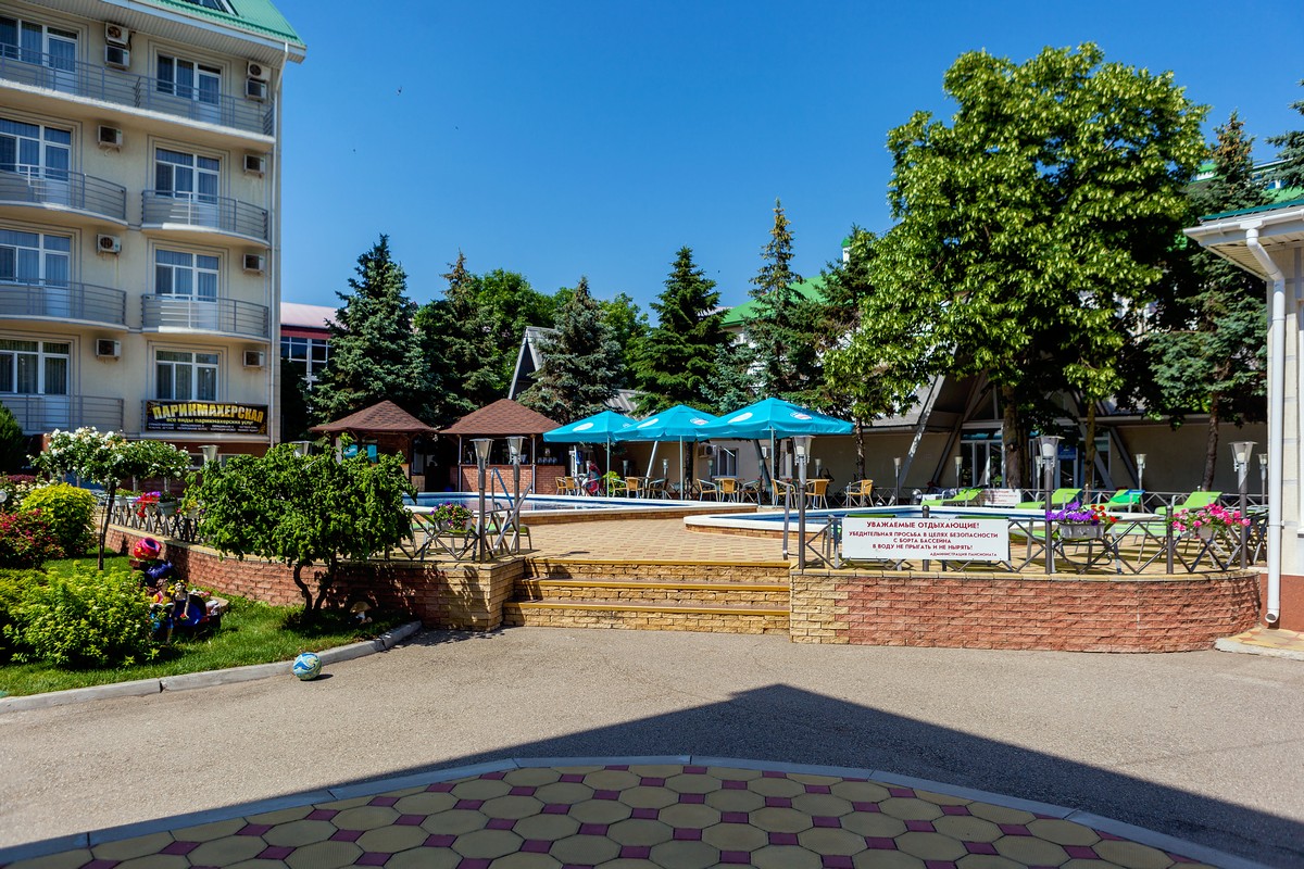 Помимо столовой, где гости могут заказать себе комплексное питание в пансионате, работает бар у бассейна. В распоряжении отдыхающих 2 открытых бассейна (взрослый и детский) с подогреваемой водой, тренажерный зал, караоке. По вечерам в пансионате устраиваются досуговые мероприятия. На территории доступен беспроводной интернет, возле корпуса организована автостоянка. Детей развлекают аниматоры, регулярно устраиваются детские дискотеки. Также для юных гостей оборудована игровая площадка, в общем бассейне есть специальное детское отделение. Малышам пансионат предоставляет стульчики для кормления, прогулочные коляски, кроватки-манежи.