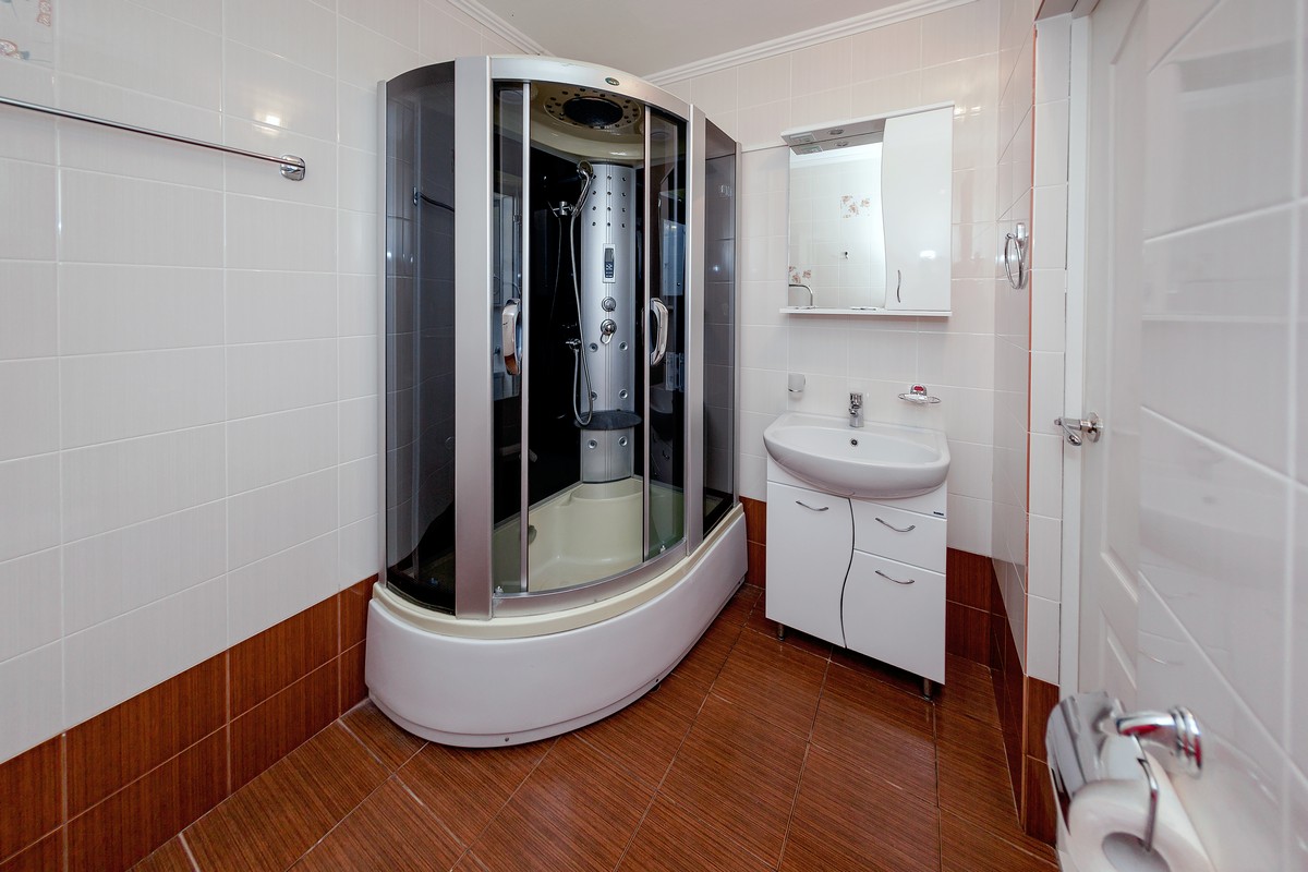 с душевой кабиной: ; туалетные принадлежности: ;