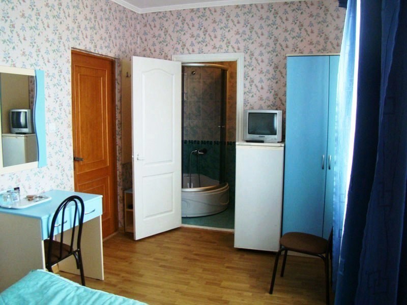Трехэтажный корпус отеля включает в себя 15 номеров разной категории комфорта. В каждом есть индивидуальный санузел с душевой кабиной, кондиционер, телевизор и холодильник, в некоторых комнатах предусмотрены балконы. В гостинице для отдыхающих организована общая кухня, де можно самостоятельно приготовить еду, есть финская сауна и беспроводной интернет.