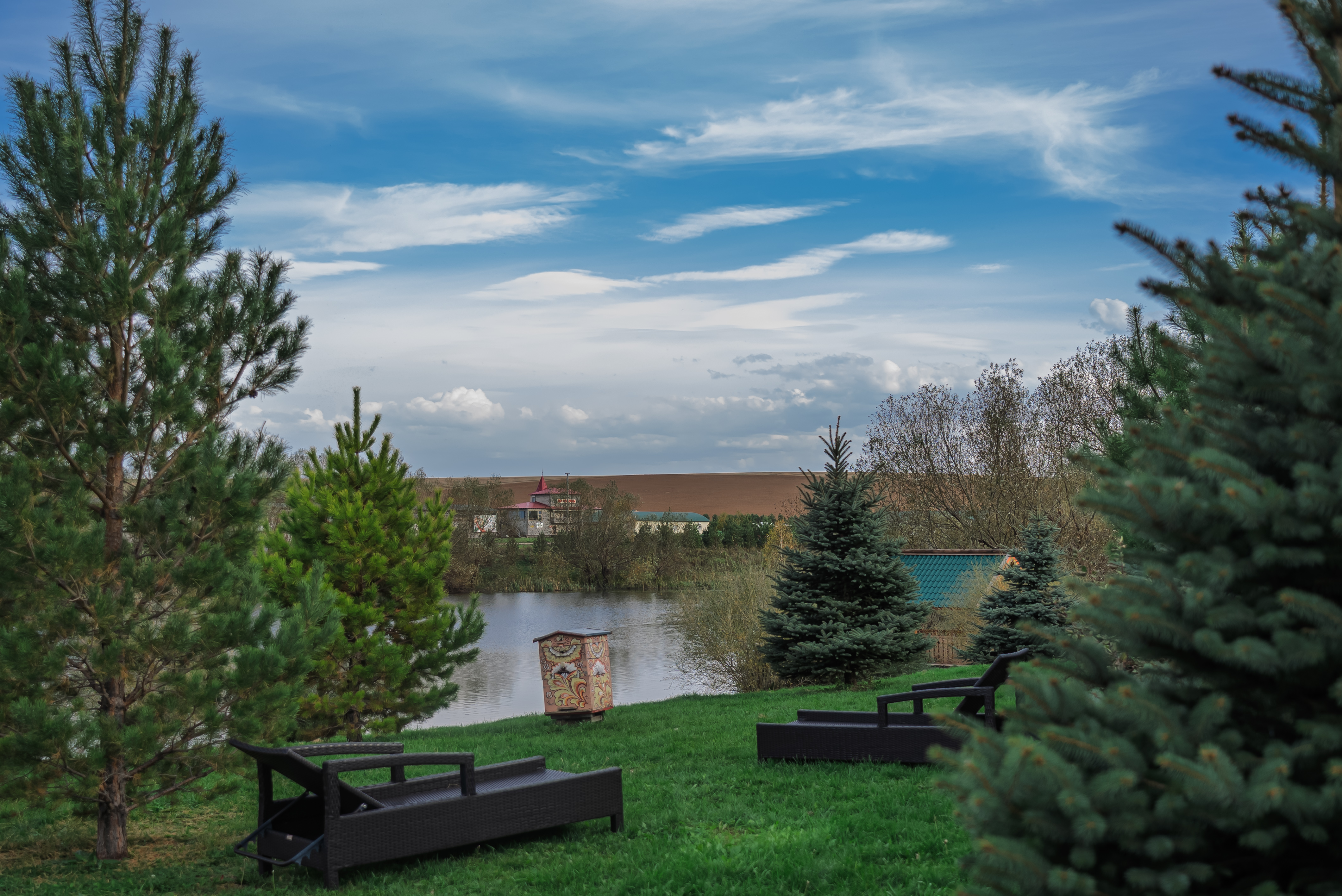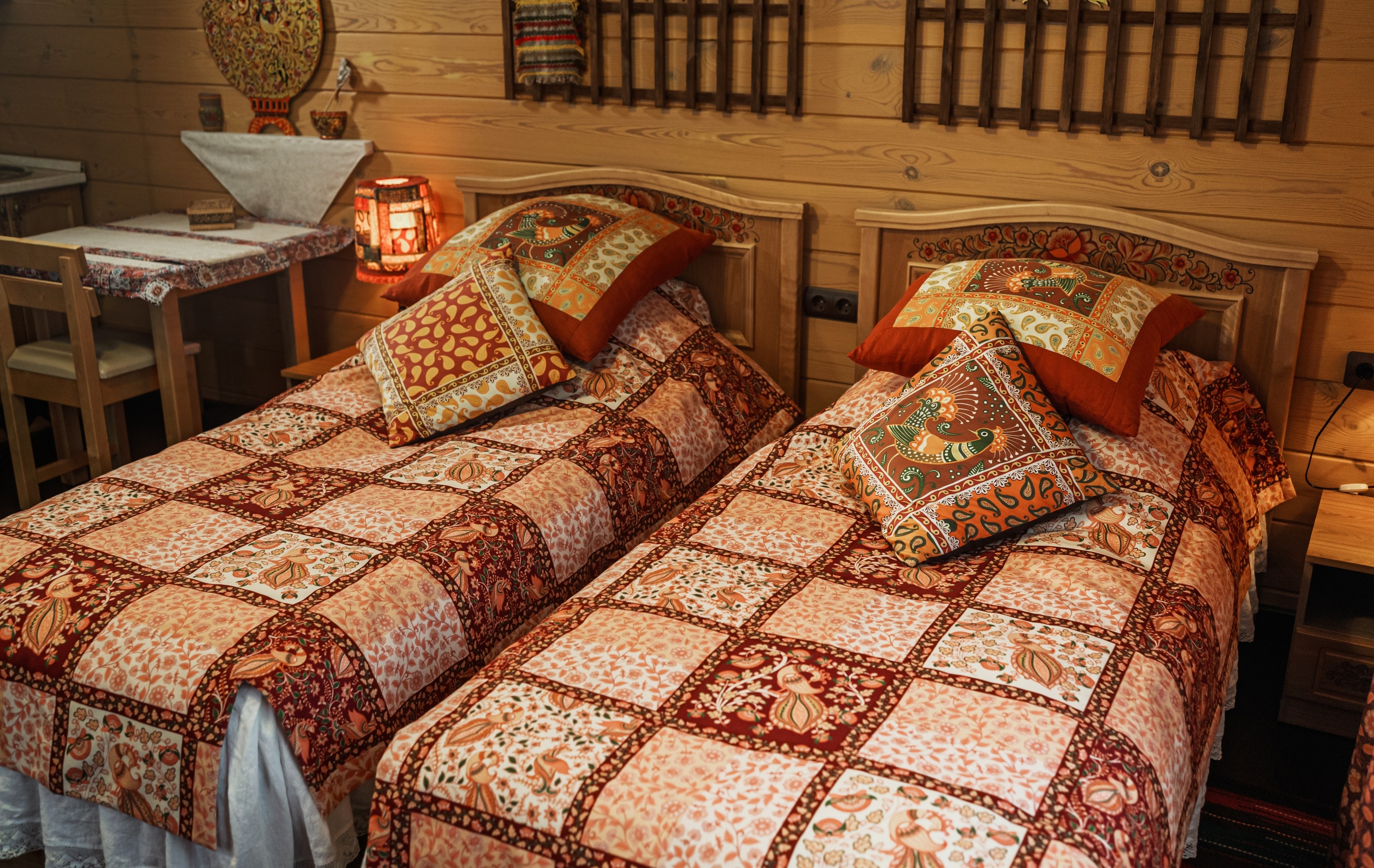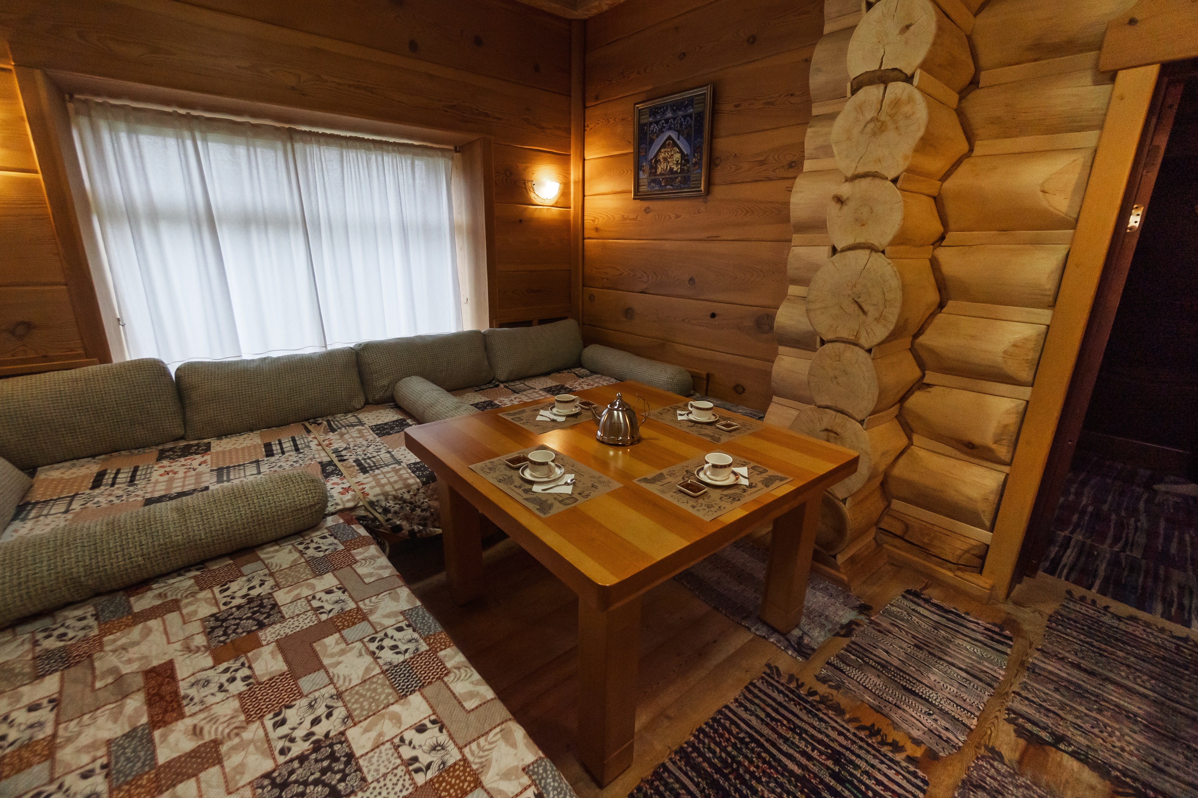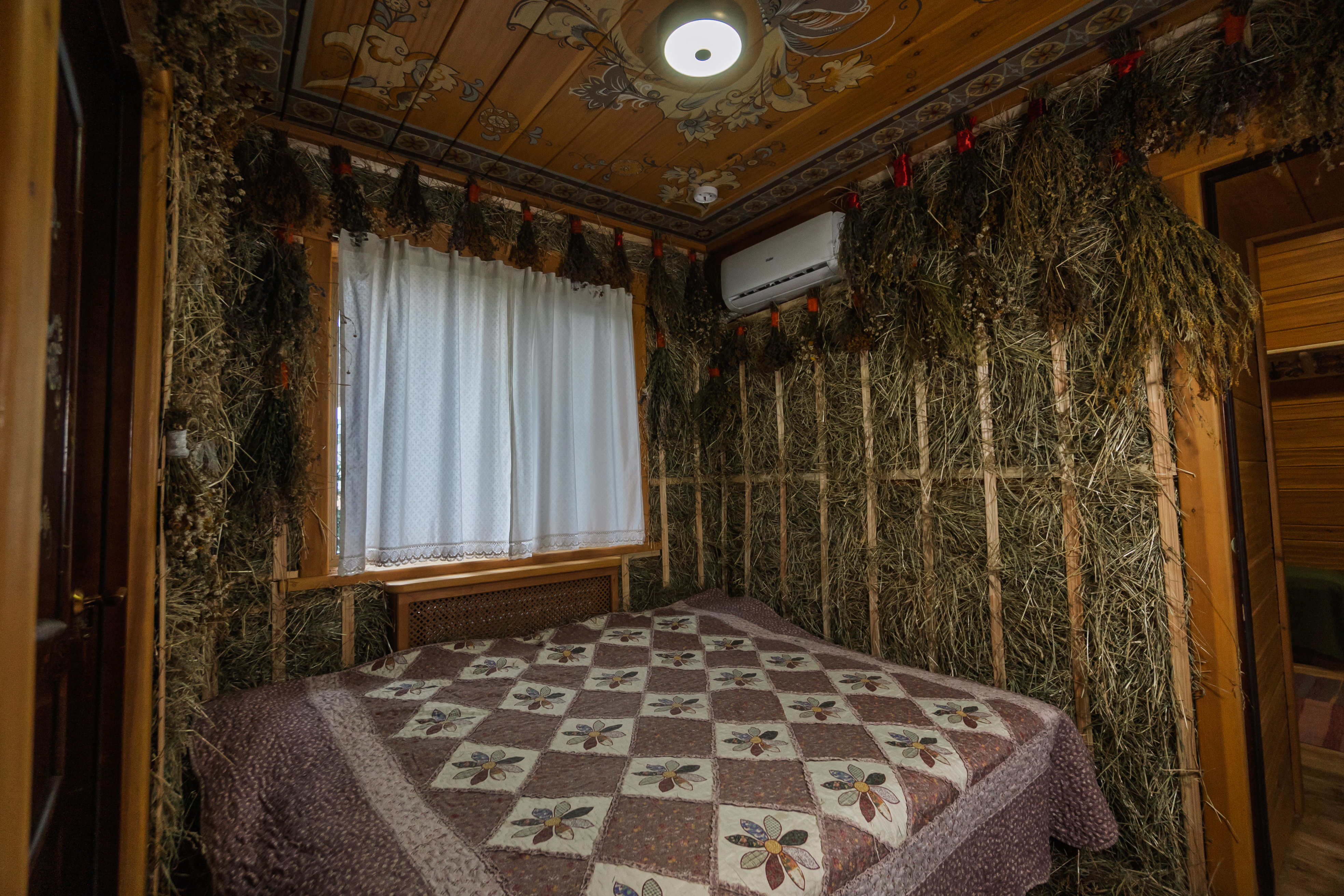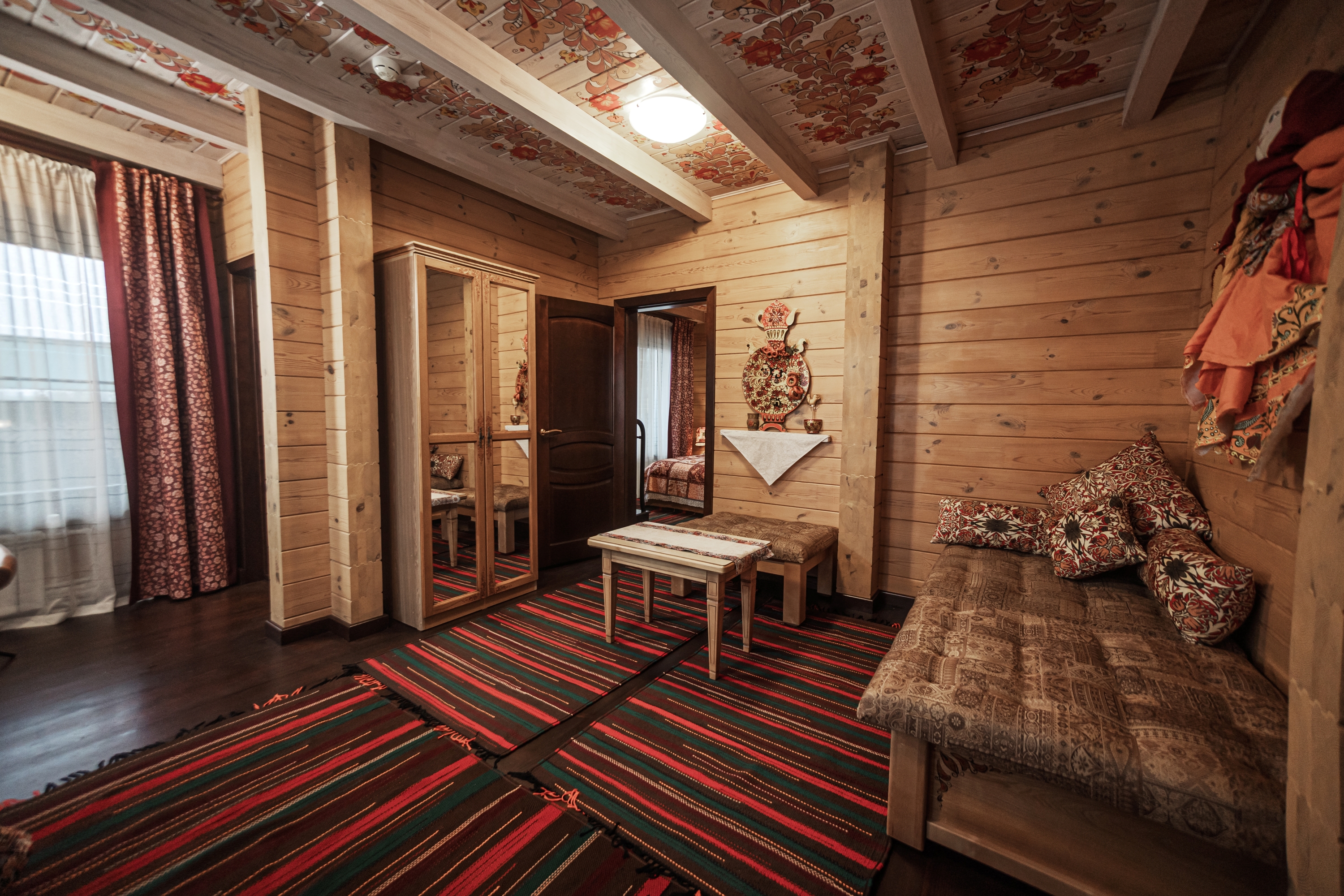 Территория комплекса раскинулась вдоль берега одного из трех искусственных озер, занимая площадь 2 гектара. Для размещения предусмотрено три одноэтажных корпуса из кедра с отдельным входом и верандой. Весь комплекс, включая номерной фонд, выполнен в традиционном русском стиле. К услугам отдыхающих 14 благоустроенных номеров, в каждом из которых есть мини-кухня, оборудованная холодильником, микроволновой печью, посудой, чайником и обеденной мебелью, а также телевизор, фен, туалетные принадлежности и халаты. Ароматная древесина домов, традиционная ручная роспись, авторский текстиль, лоскутные теплые одеяла и природная тишина на берегу озера делают отдых максимально комфортным.
