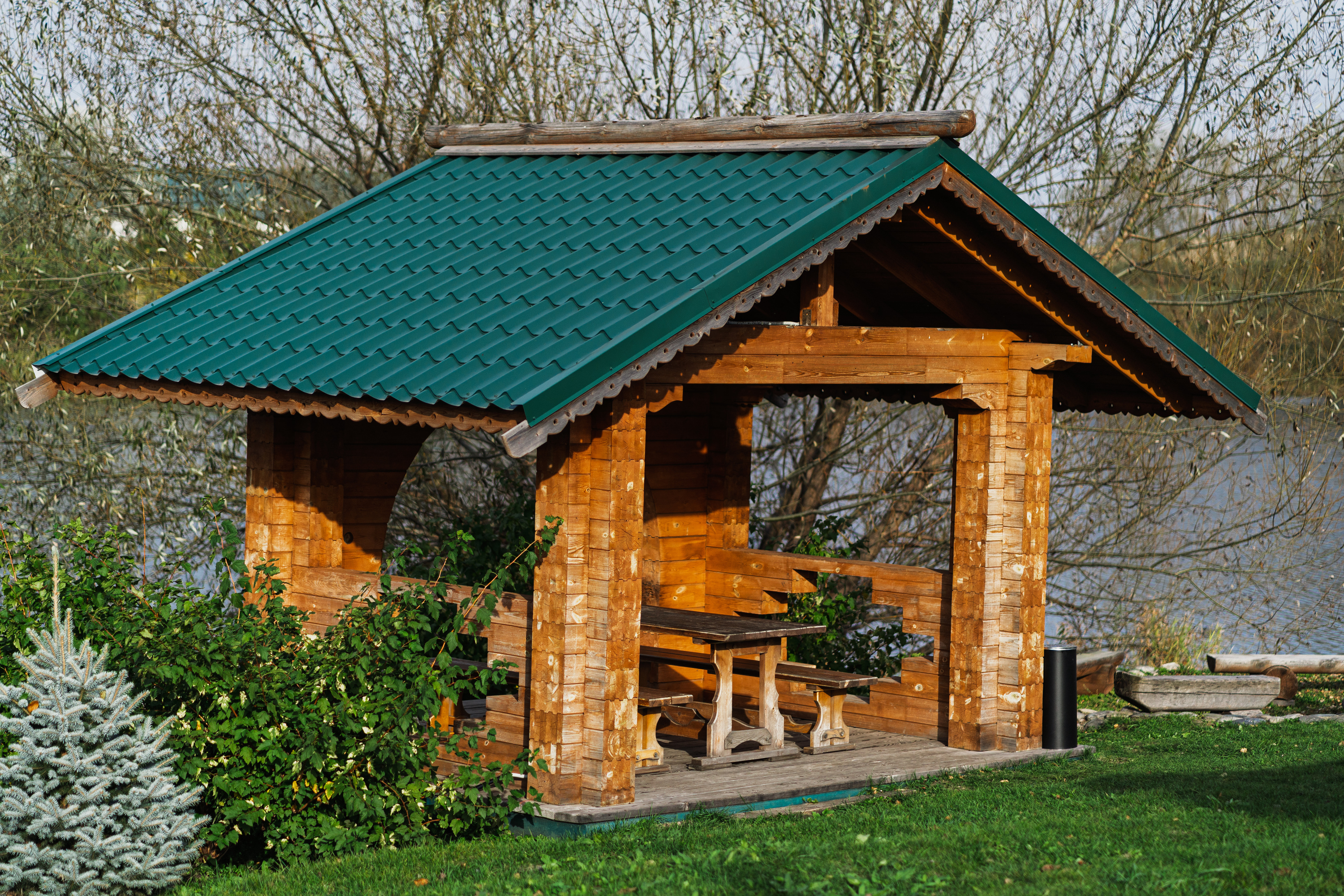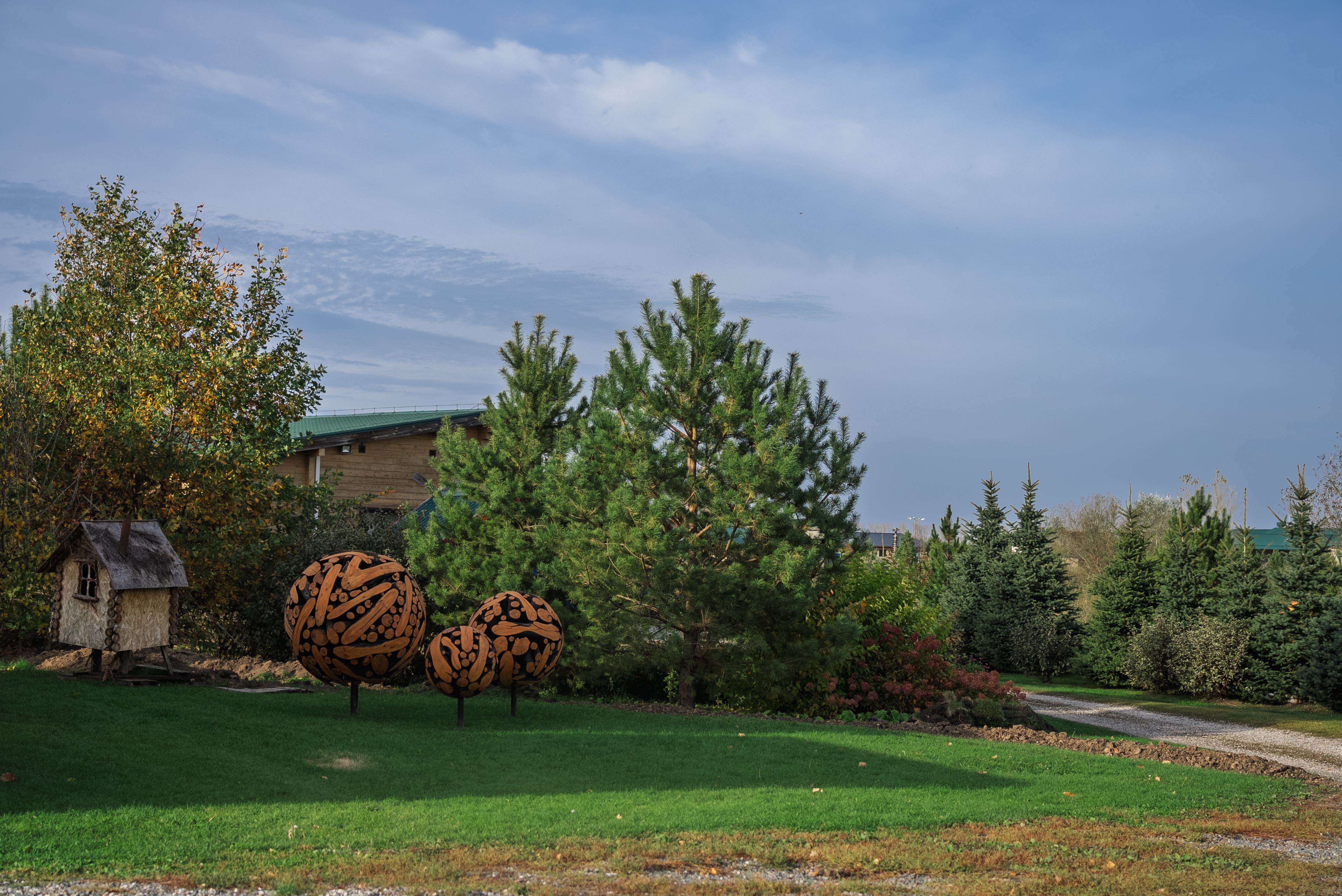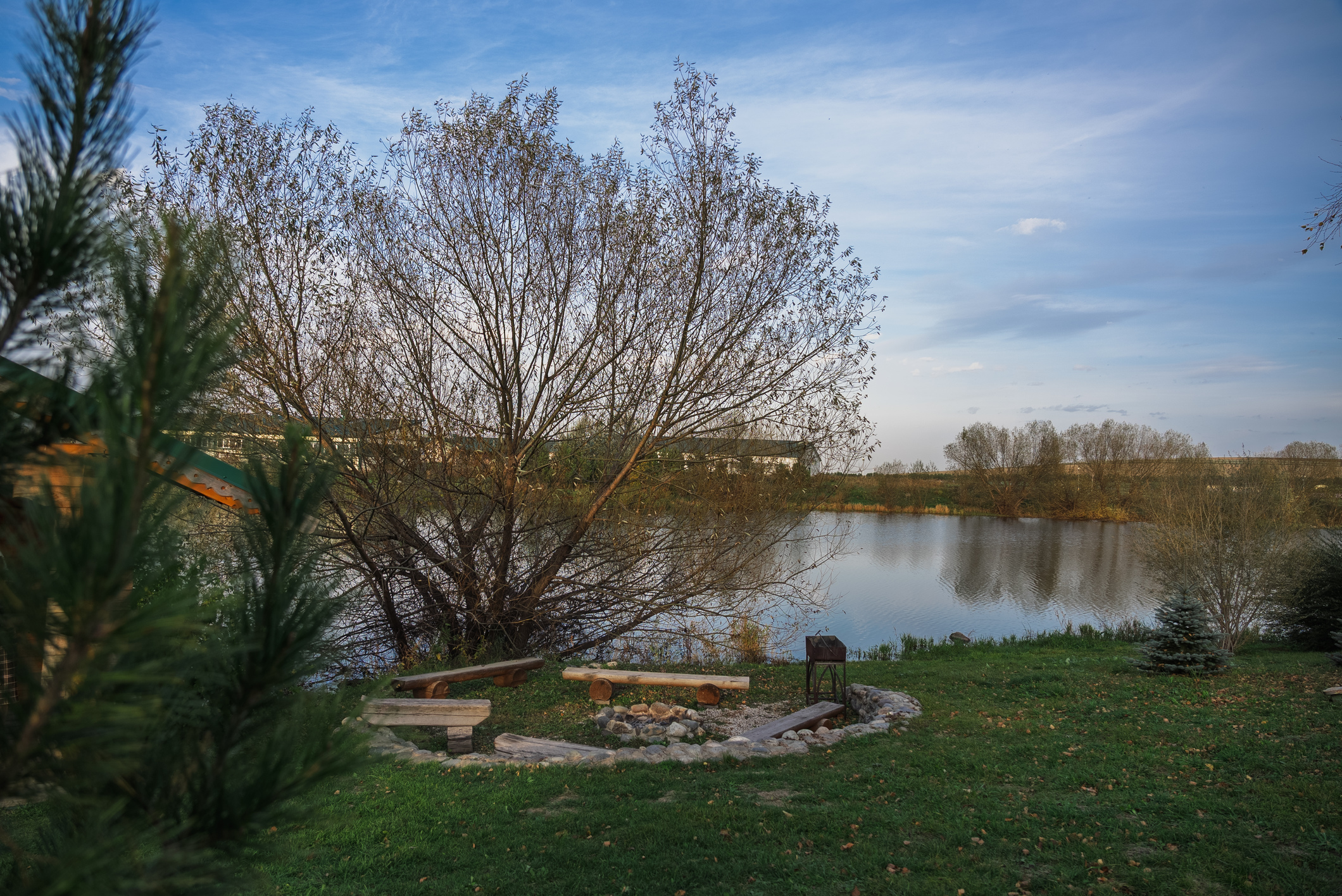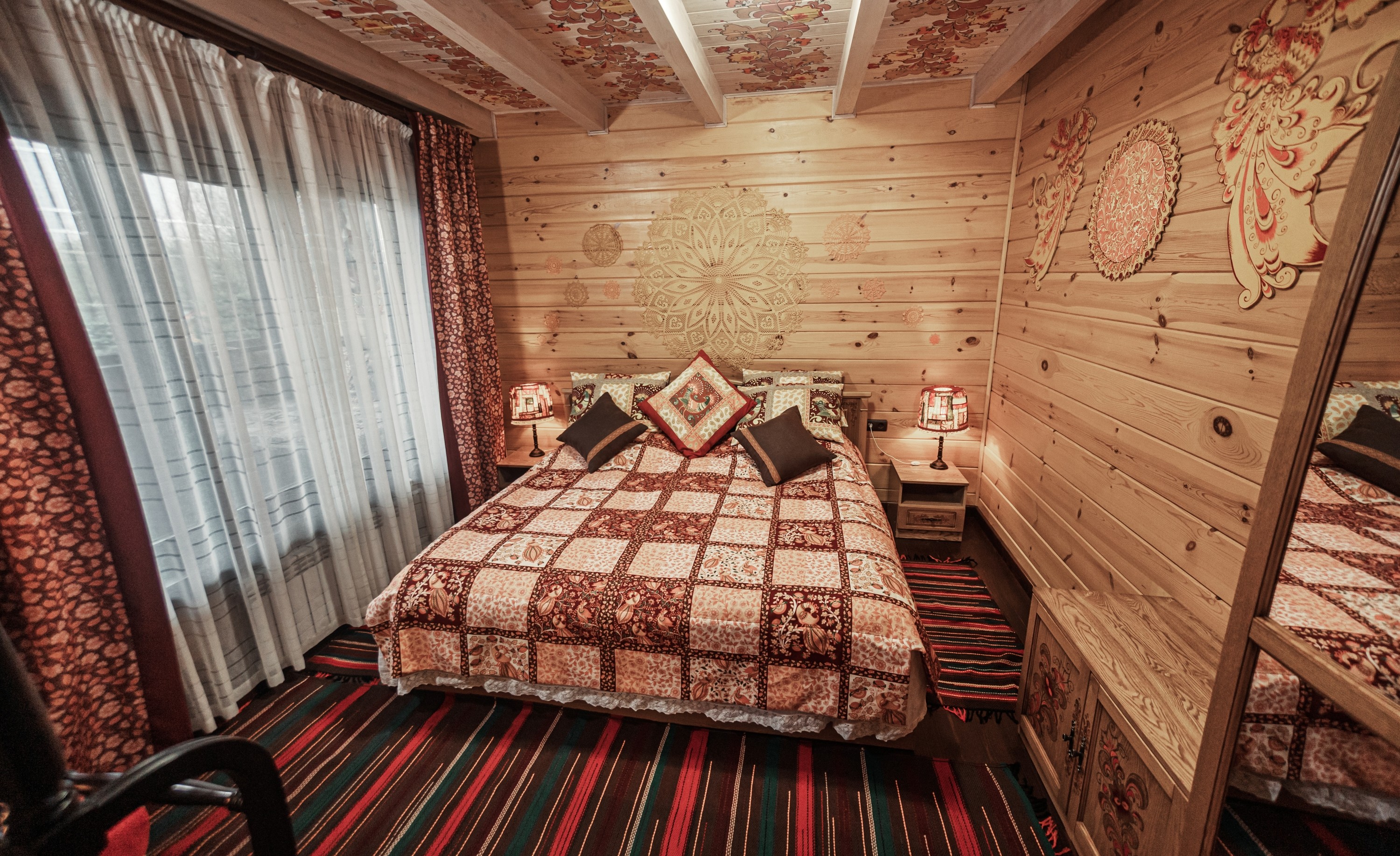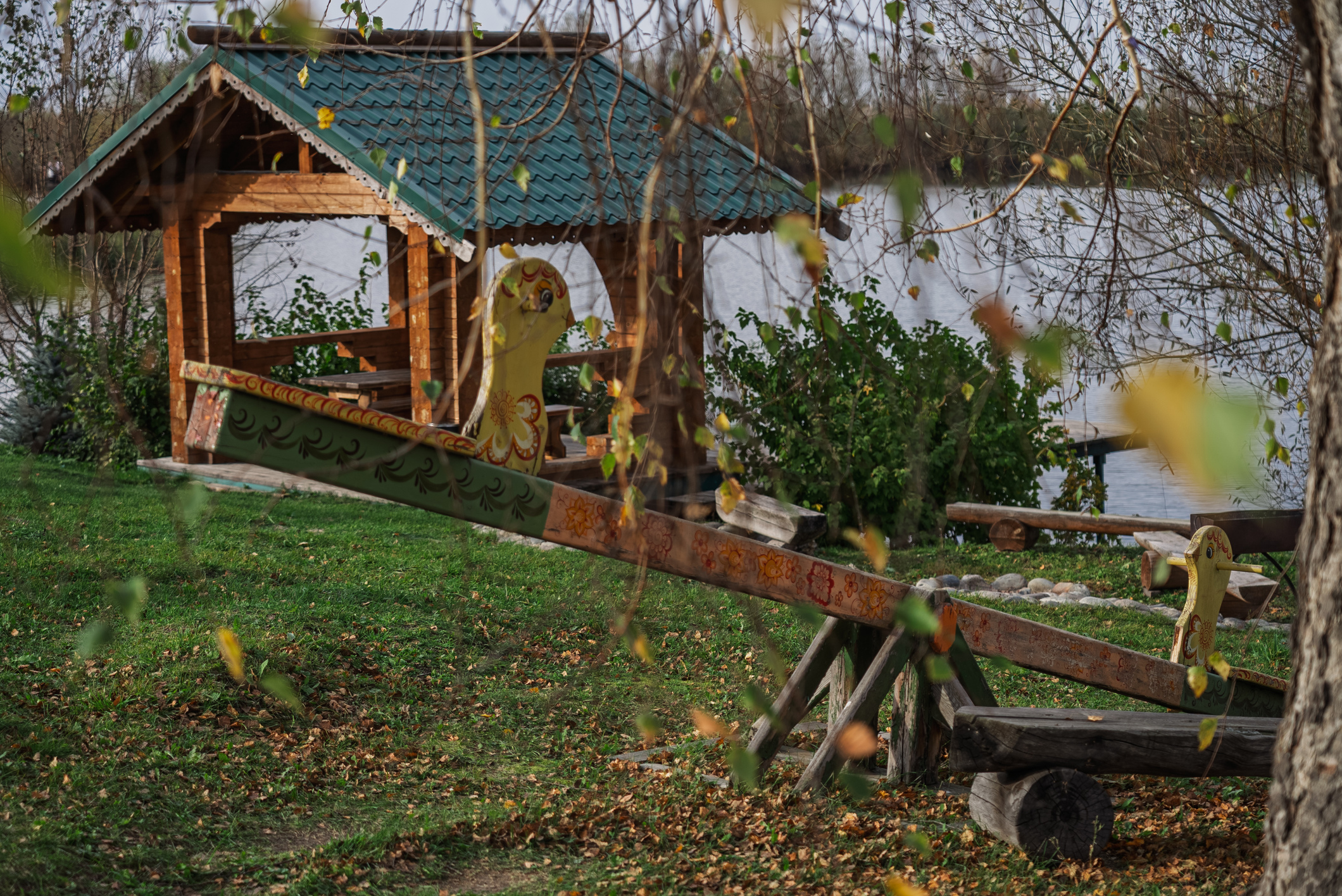 Территория комплекса раскинулась вдоль берега одного из трех искусственных озер, занимая площадь 2 гектара. Для размещения предусмотрено три одноэтажных корпуса из кедра с отдельным входом и верандой. Весь комплекс, включая номерной фонд, выполнен в традиционном русском стиле. К услугам отдыхающих 14 благоустроенных номеров, в каждом из которых есть мини-кухня, оборудованная холодильником, микроволновой печью, посудой, чайником и обеденной мебелью, а также телевизор, фен, туалетные принадлежности и халаты. Ароматная древесина домов, традиционная ручная роспись, авторский текстиль, лоскутные теплые одеяла и природная тишина на берегу озера делают отдых максимально комфортным.