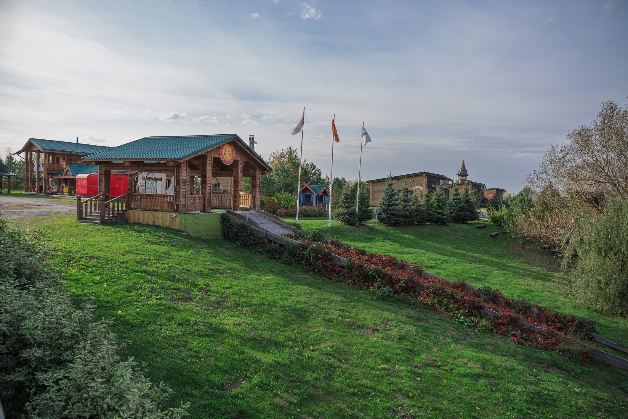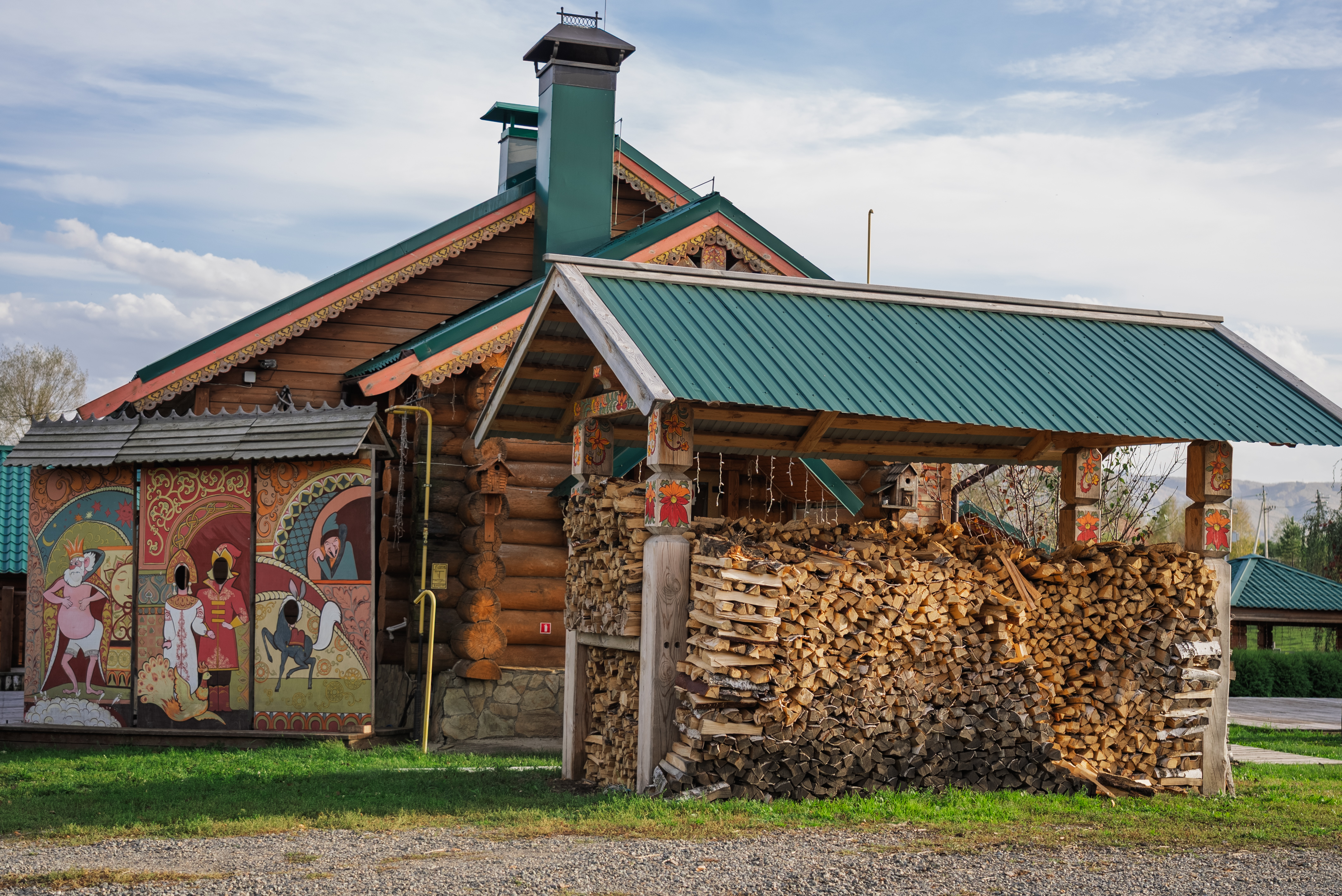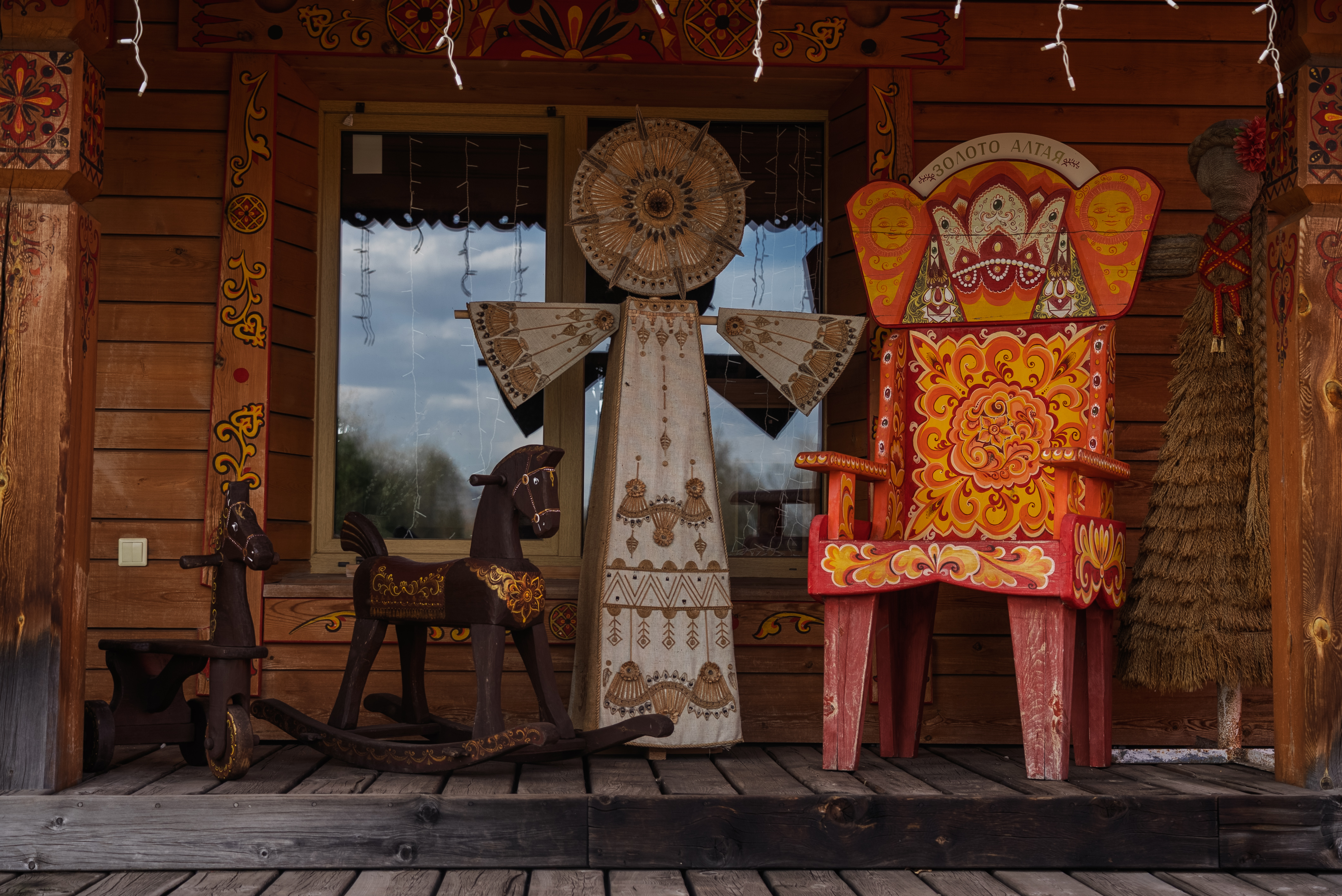 Уникальная черта комплекса – воздвигнутый во имя святителя Николая Чудотворца деревянный Храм. Сруб выполнен из 300-летней сибирской лиственницы по канонам русского деревянного зодчества – без единого гвоздя! Также на территории комплекса находится музей «Резиденция Сибирской Масленицы». Он открыт для посещений, хранит экспонаты из прошлой эпохи - русско-народные костюмы, утварь, ремесленные станки и другое. Для гостей проводятся экскурсии по территории комплекса, для желающих увидеть настоящий Алтай возможна организация автомобильных туров.