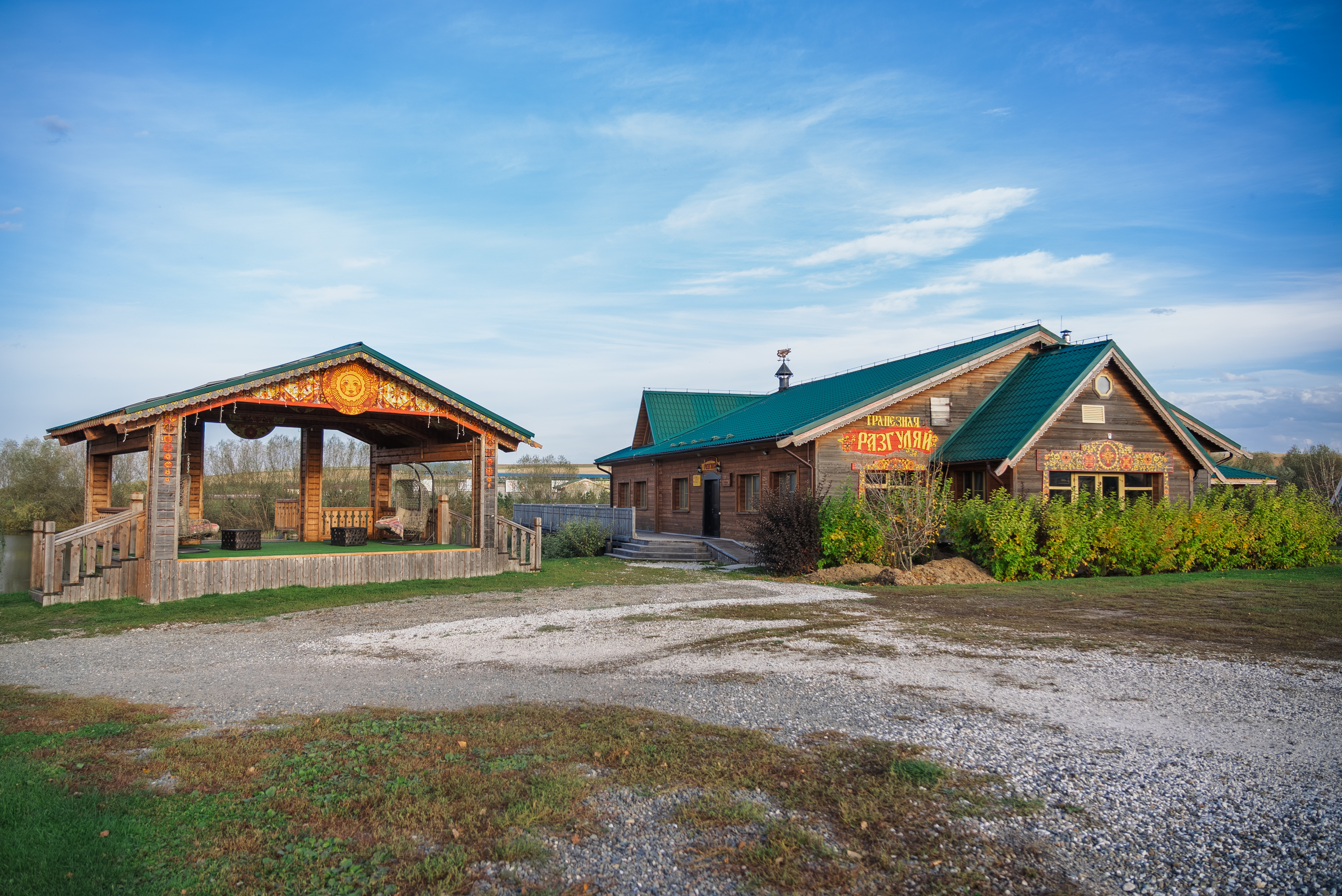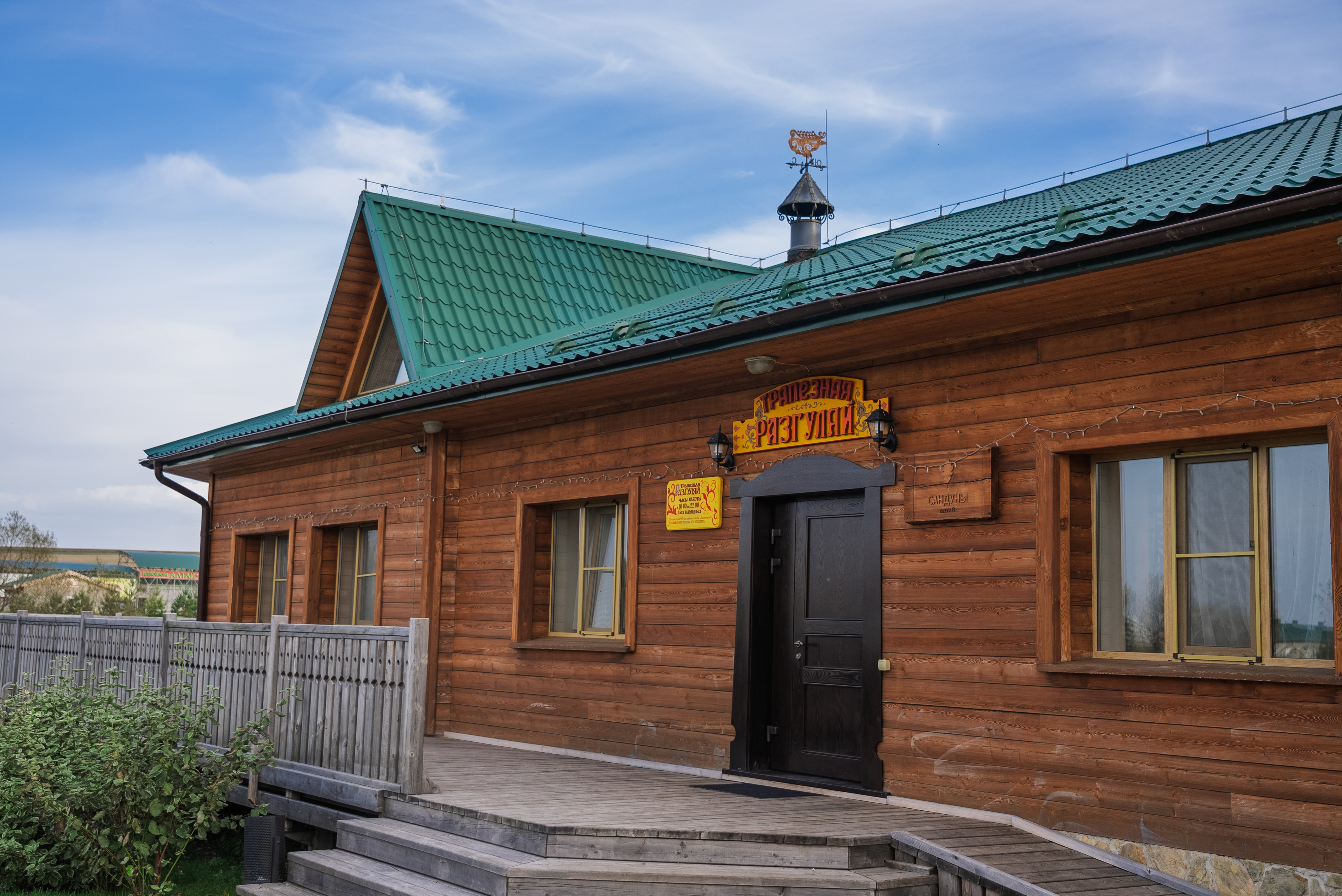 На территории усадьбы находится один из лучших ресторанов Белокурихи – трапезная «Разгуляй». В меню - русская и европейская кухни с применением продуктов с собственной фермы. Для маленьких гостей предлагается детское меню, для сладкоежек - вкуснейшие десерты.