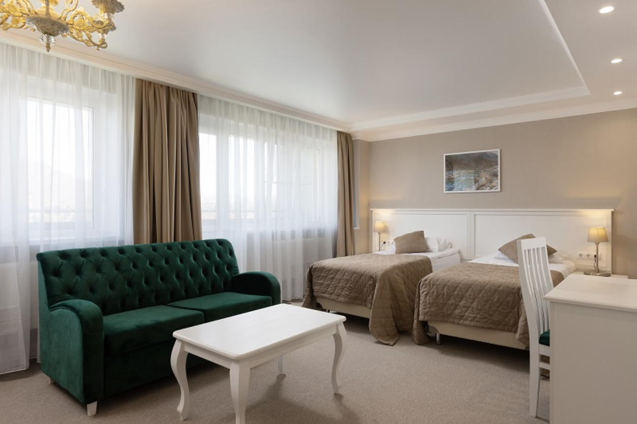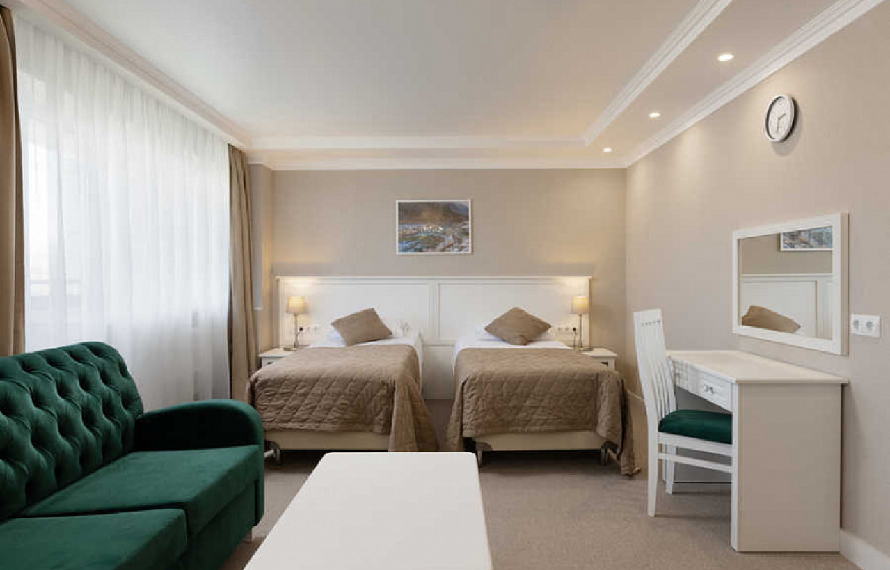 - Люкс. 2-местный 2-комнатный Люкс Улучшенный. Площадь: 22. Осн. мест: 2. Доп. мест: 1.