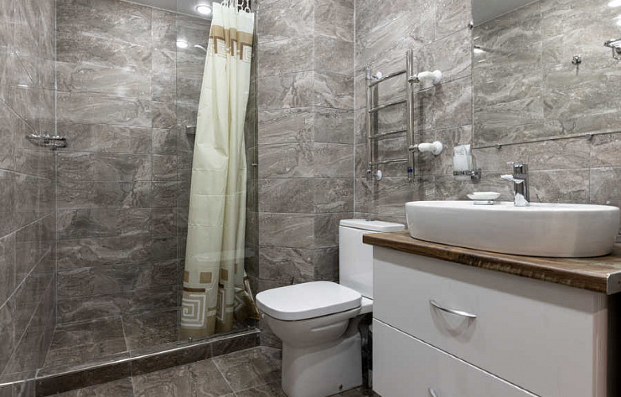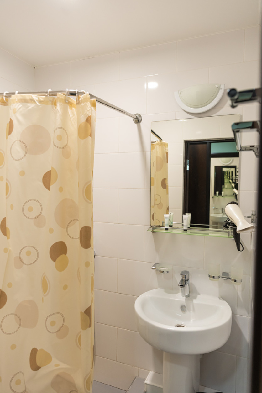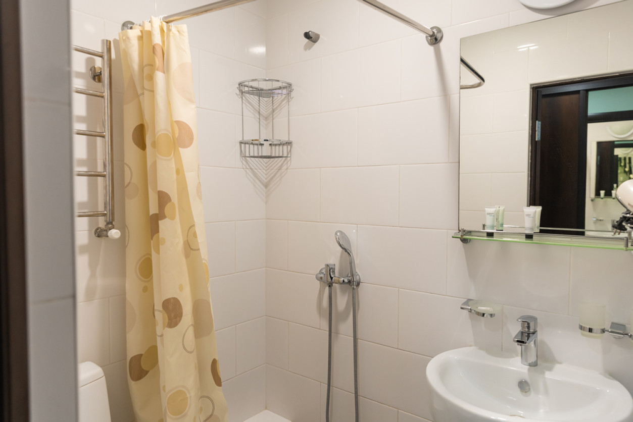 с душем (поддон): ; туалетные принадлежности: ; фен: ;