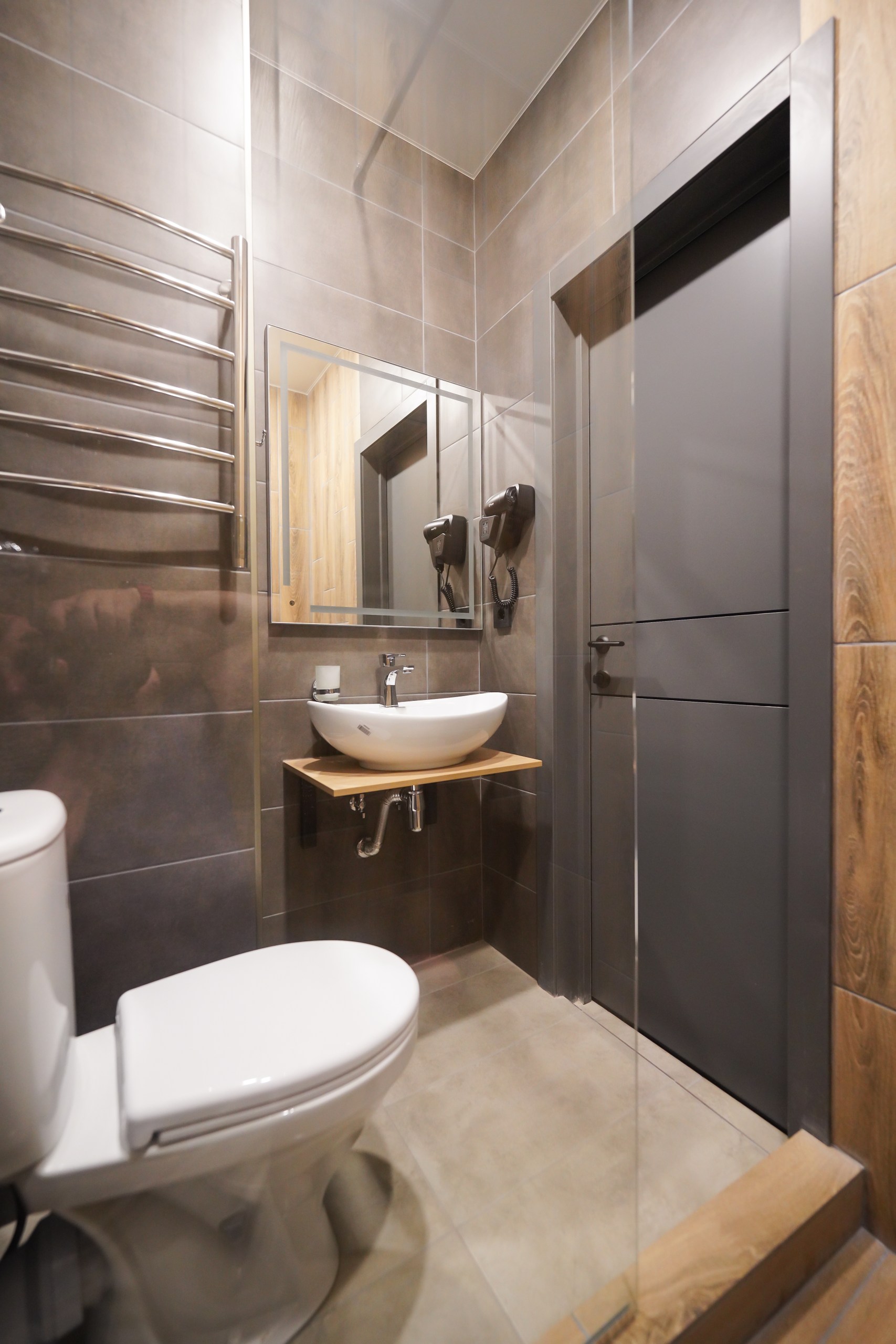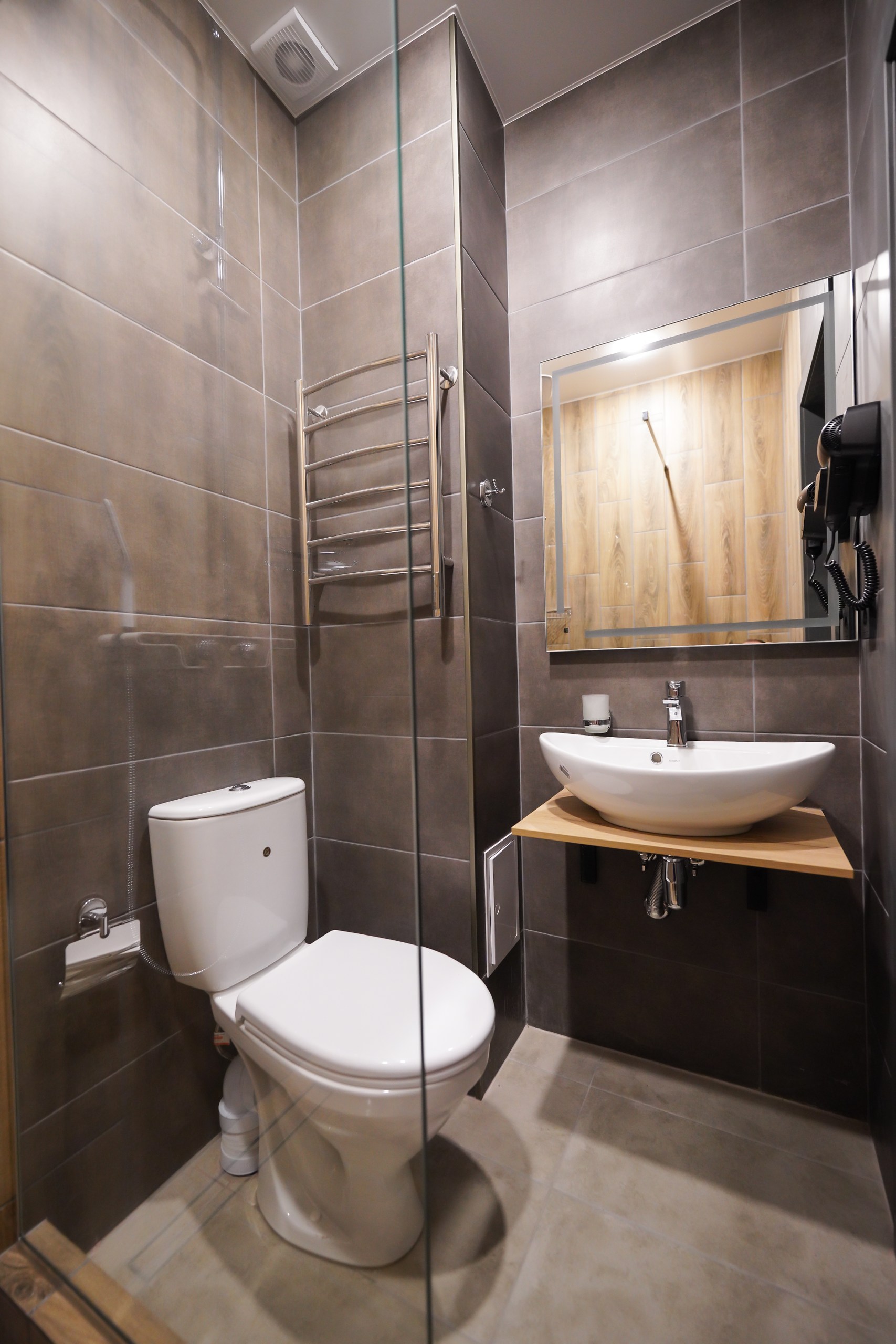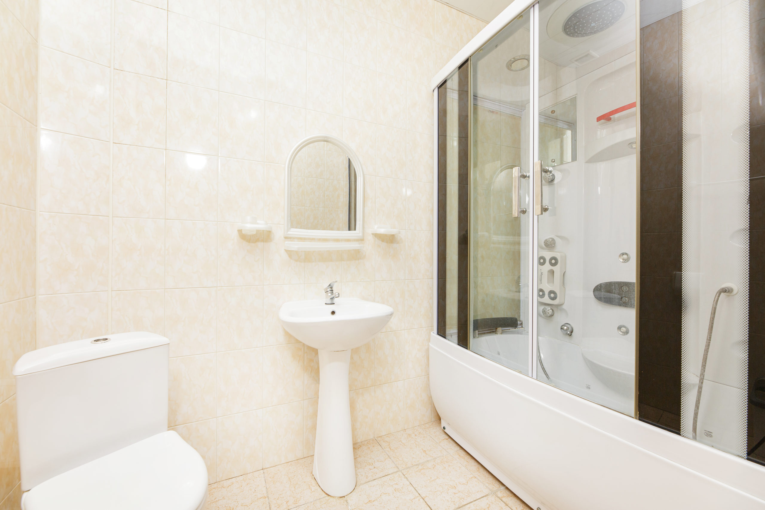 с душем или ванной: ; туалетные принадлежности: ;
