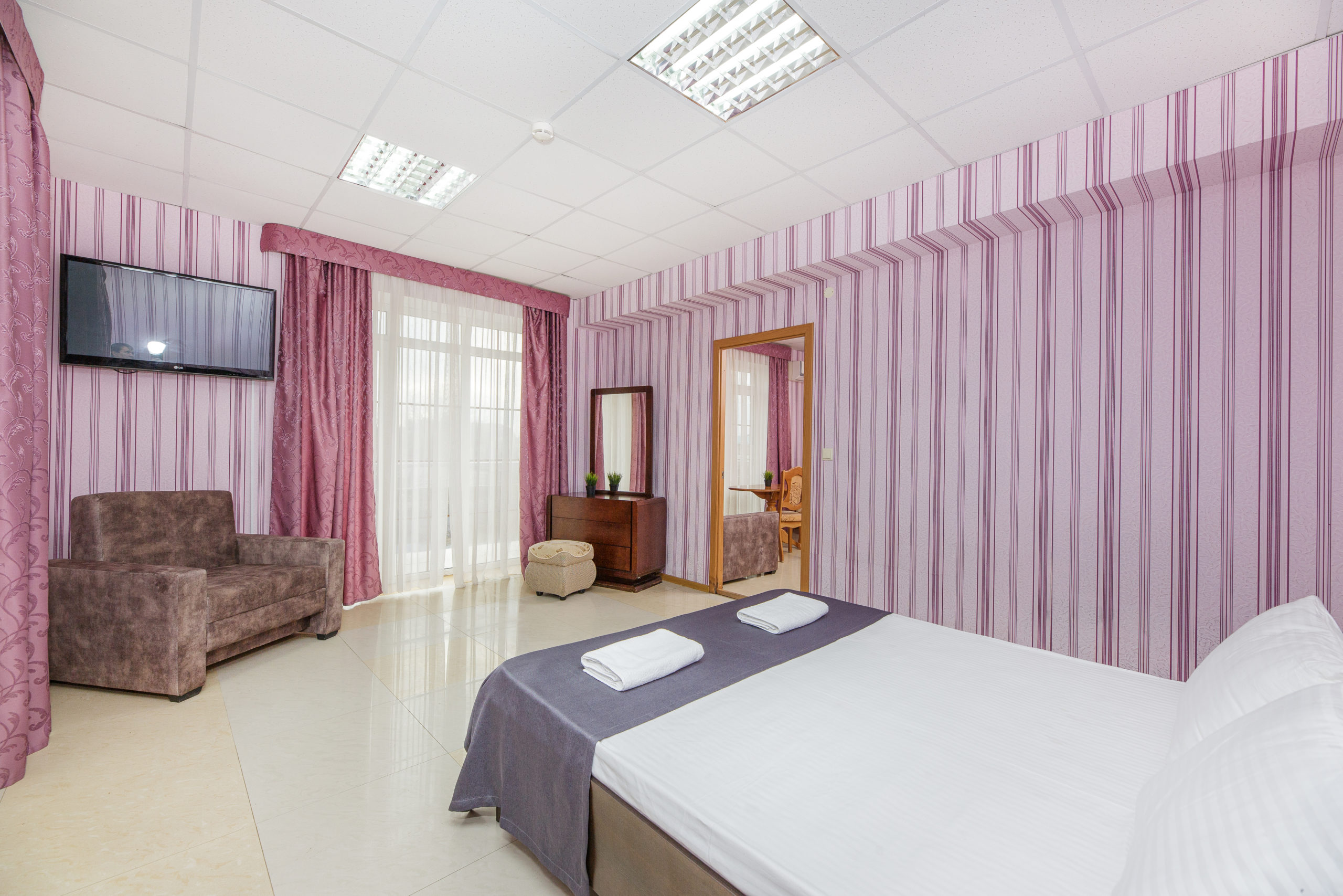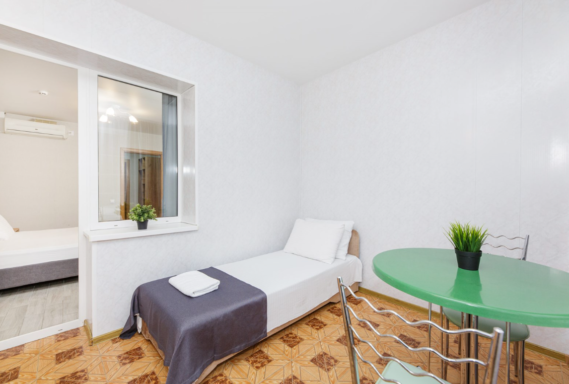 - Стандарт. 4х-местный 2х-комнатный с балконом. Площадь: 26. Осн. мест: 4. Доп. мест: 2.