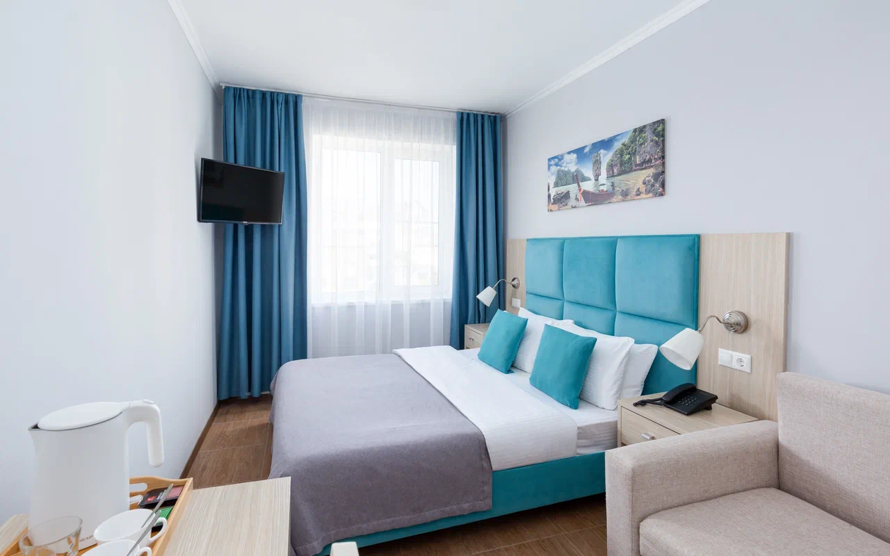 - Standart. 2-местный DBL. Площадь: 18. Осн. мест: 2. Доп. мест: 1. Всего таких номеров: 50.