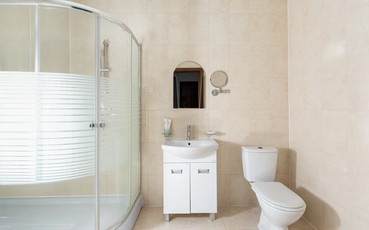с душем; тапочки; туалетные принадлежности; фен; халат;