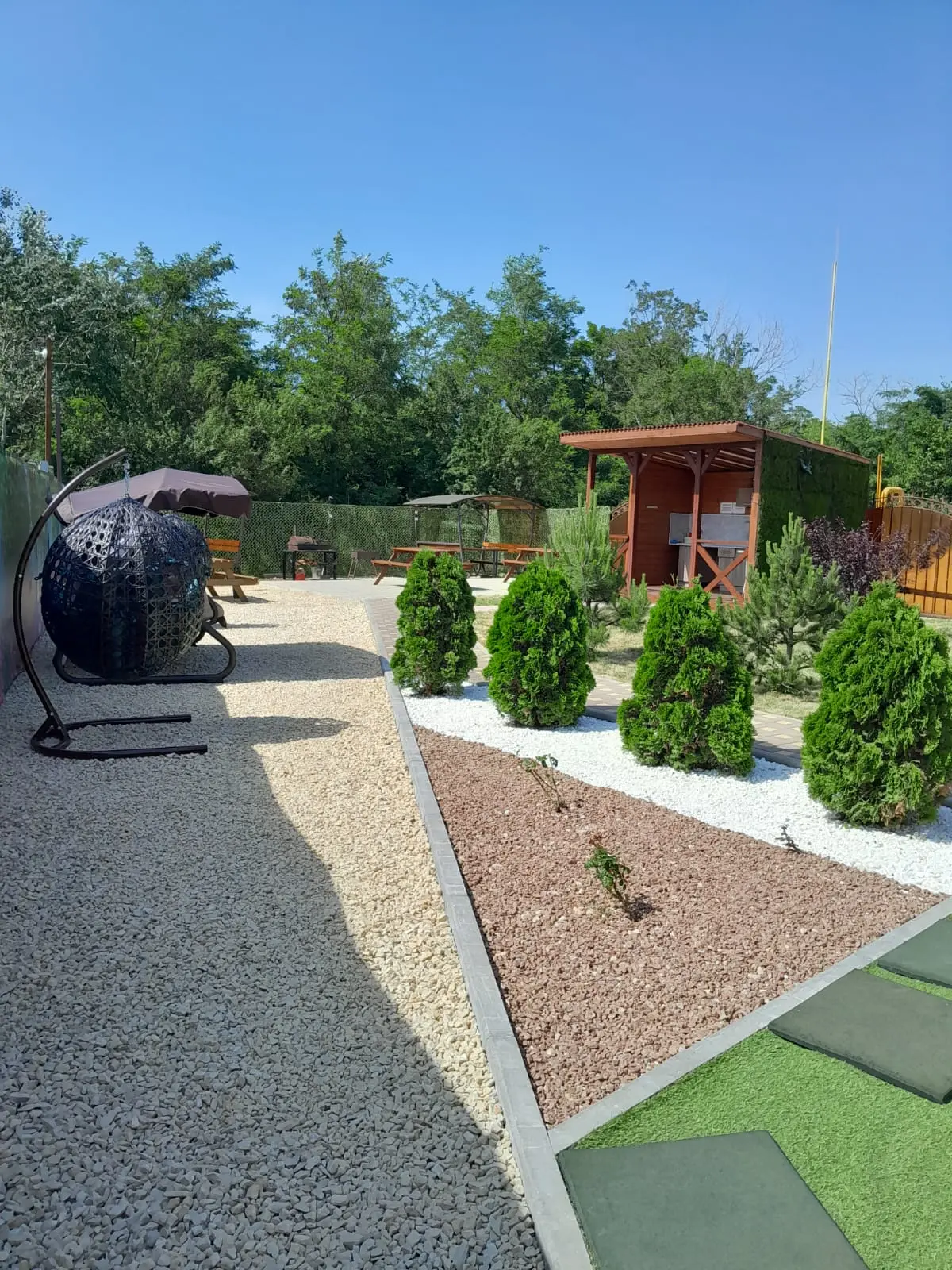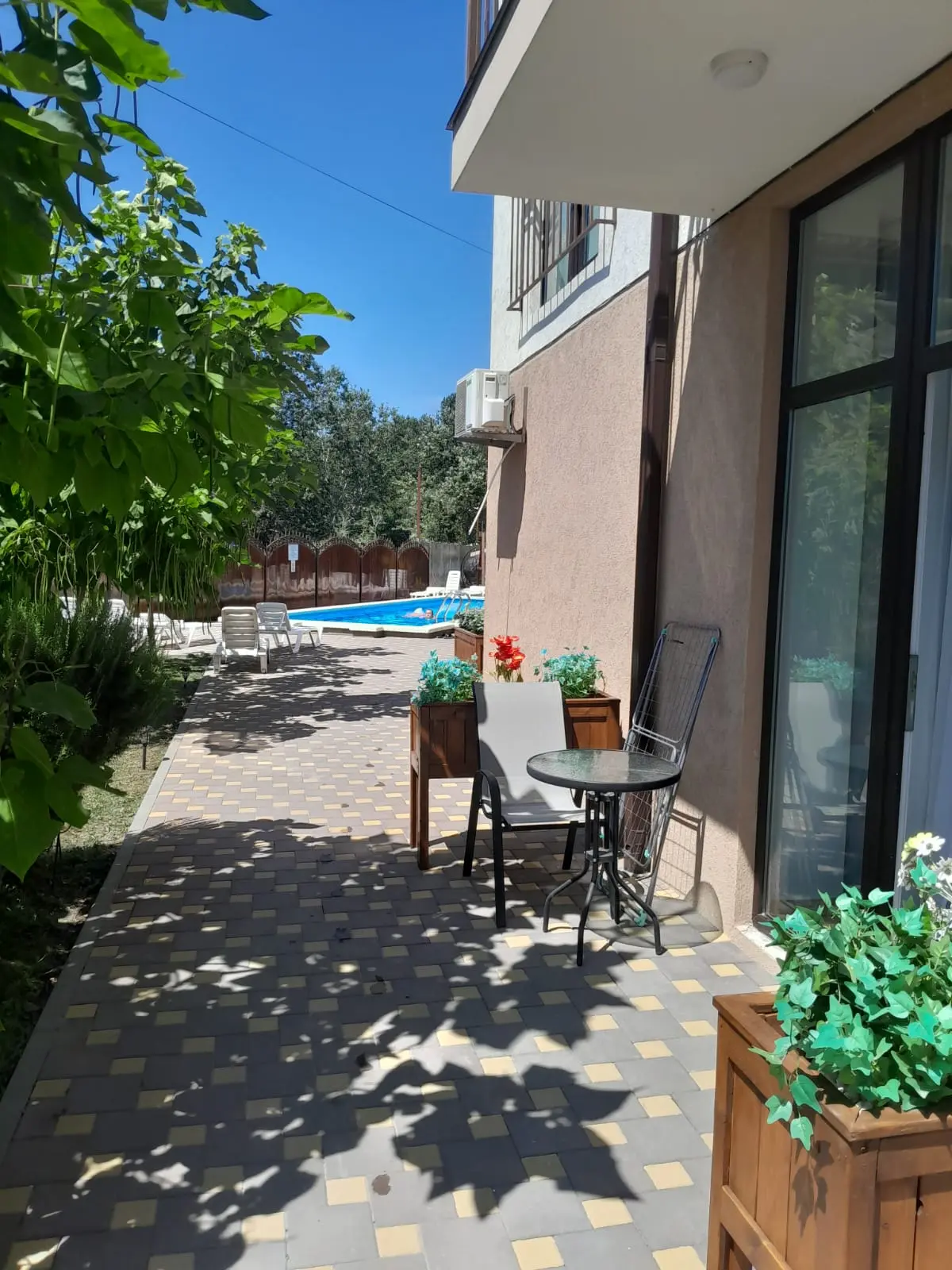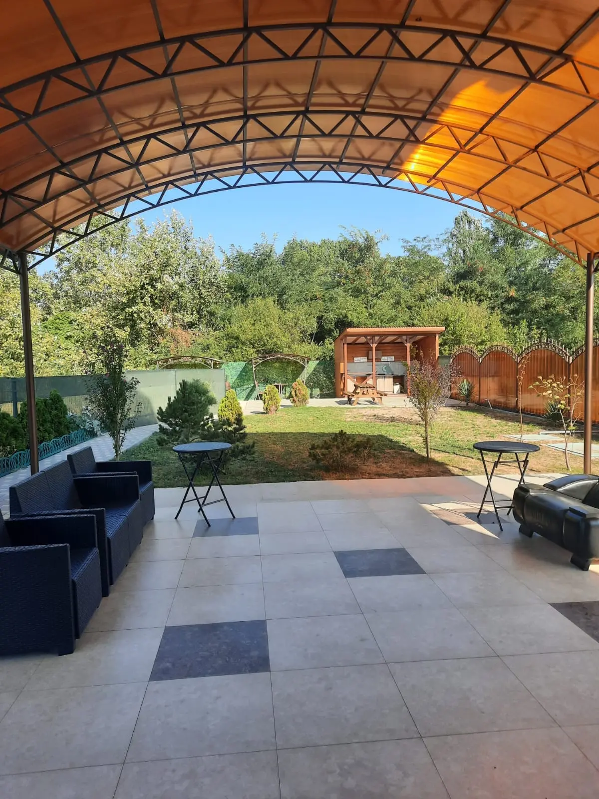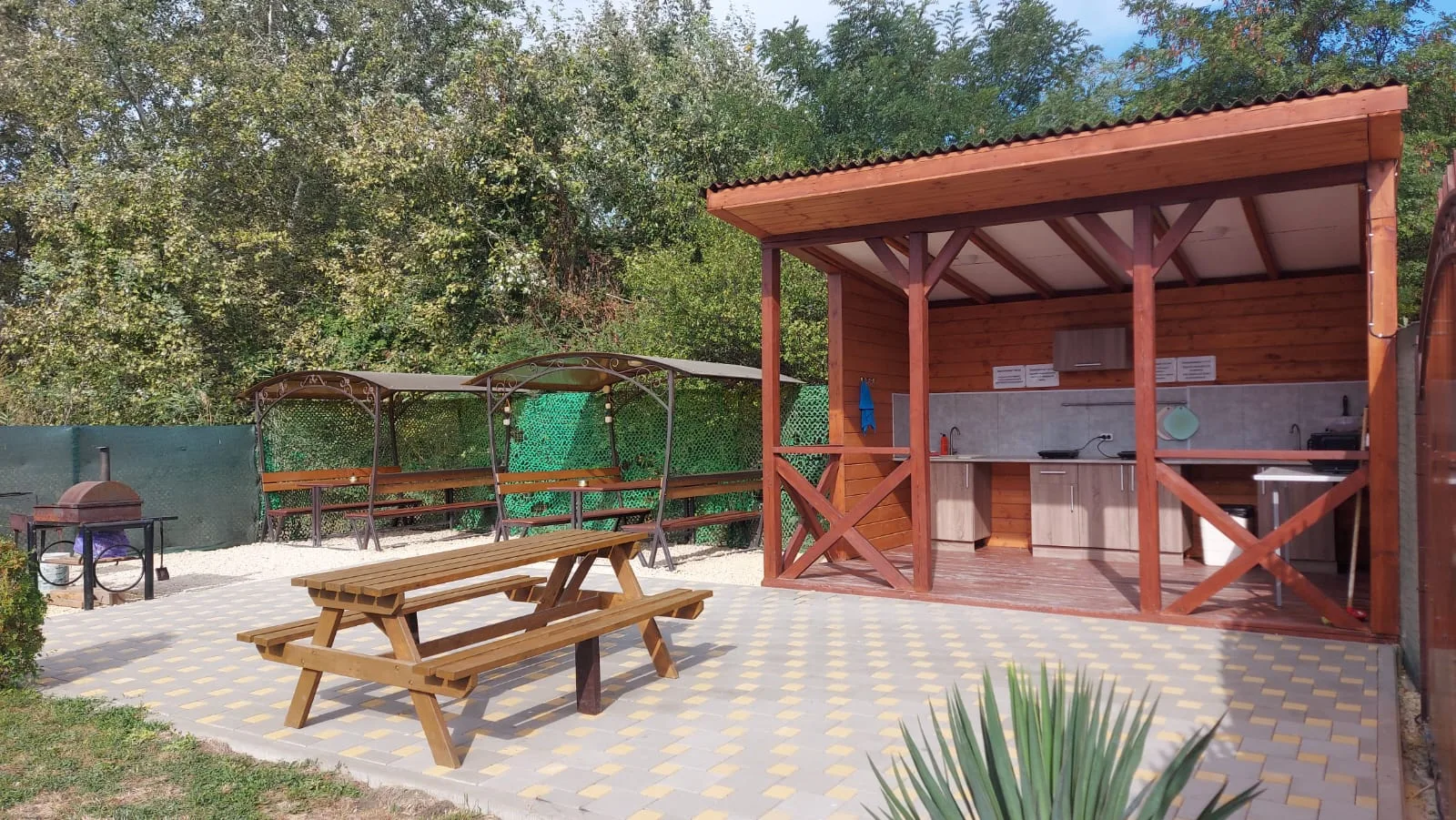 В гостевом доме оборудован кухонный уголок для самостоятельного приготовления пищи и мангальная зона, к услугам отдыхающих уличный бассейн, рядом с которым организована небольшая зона отдыха с шезлонгами. На всей территории доступна сеть wi-fi, а для гостей, приезжающих на машинах, оборудованы парковочные места.