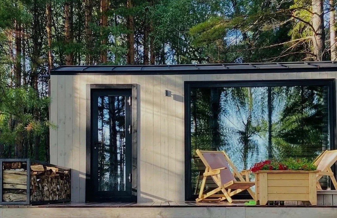 - Дом. Малый лесной дом с видом на озеро (без проектора). Осн. мест: 2. Доп. мест: 1.
