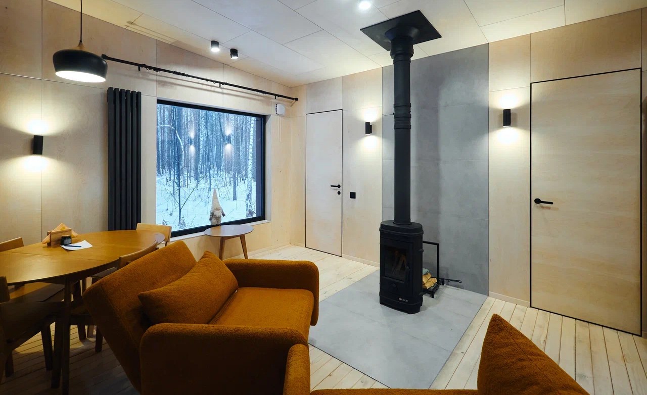 - Дом. Малый дом с камином и проектором. Площадь: 34. Осн. мест: 2. Доп. мест: 1.