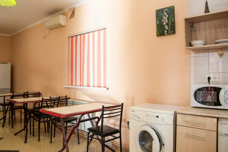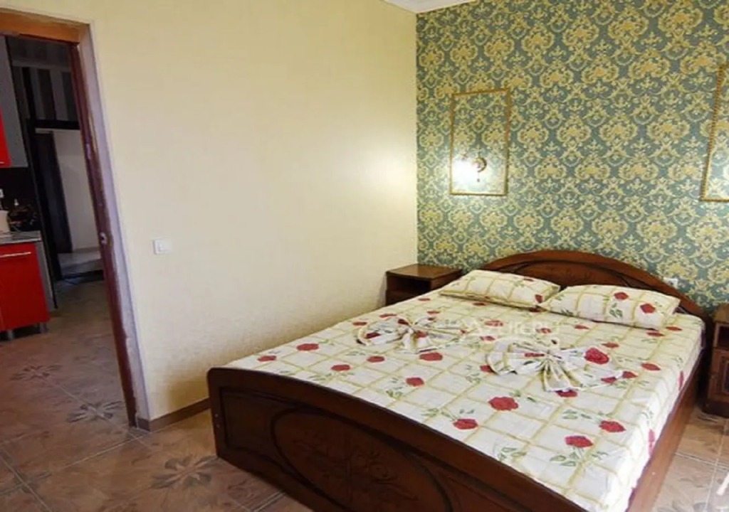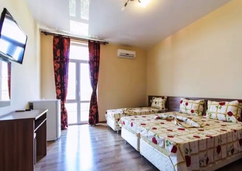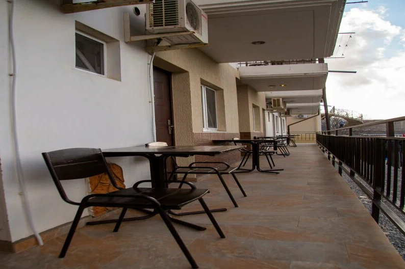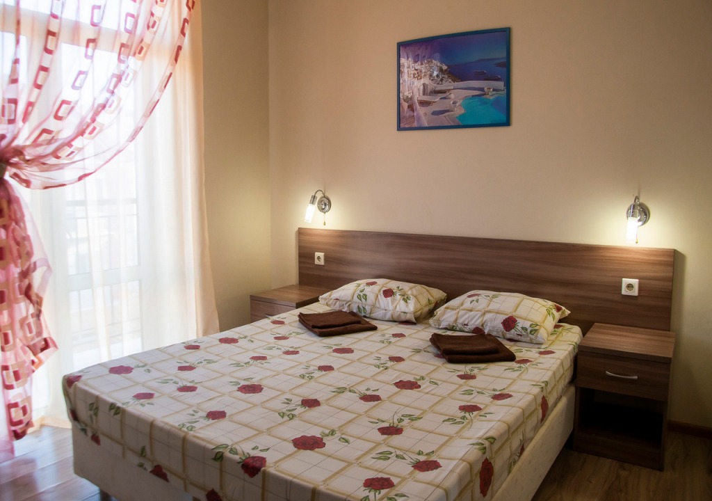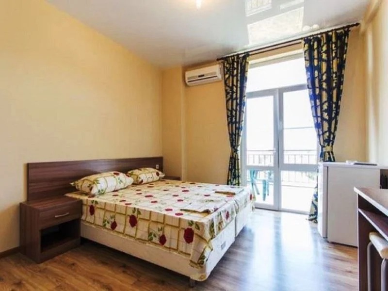 Четырехэтажный корпус занимает небольшую закрытую территорию. В распоряжении отдыхающих комфортабельные номера с удобствами. В каждом есть кондиционер, телевизор, холодильник, а также санузел и душ. В ряде номеров предусмотрены балконы, откуда отрываются виды на Кавказские горы или море.