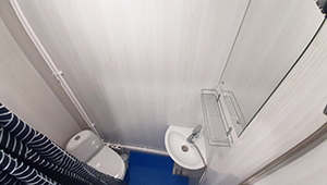 ДЗЕТА (2) 2-местная на нижней палубе (№ 009, 010) В каюте: 1 нижнее + 1 верхнее место, санузел (умывальник, душ, туалет). S=7,5 кв.м. |