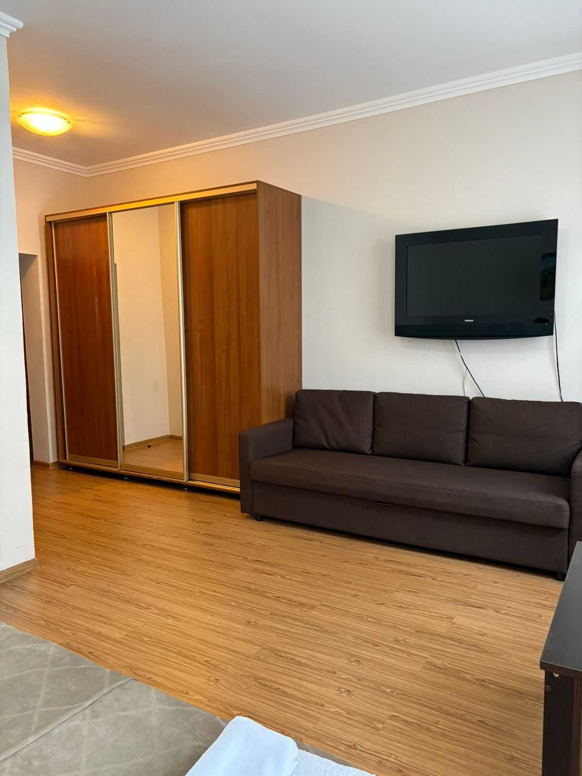 вешалка: ; диван раскладной: ; зеркало: ; кровать двуспальная: ; прикроватные тумбочки: ; стол: ; столик журнальный: ; стулья: ; шкаф: ;