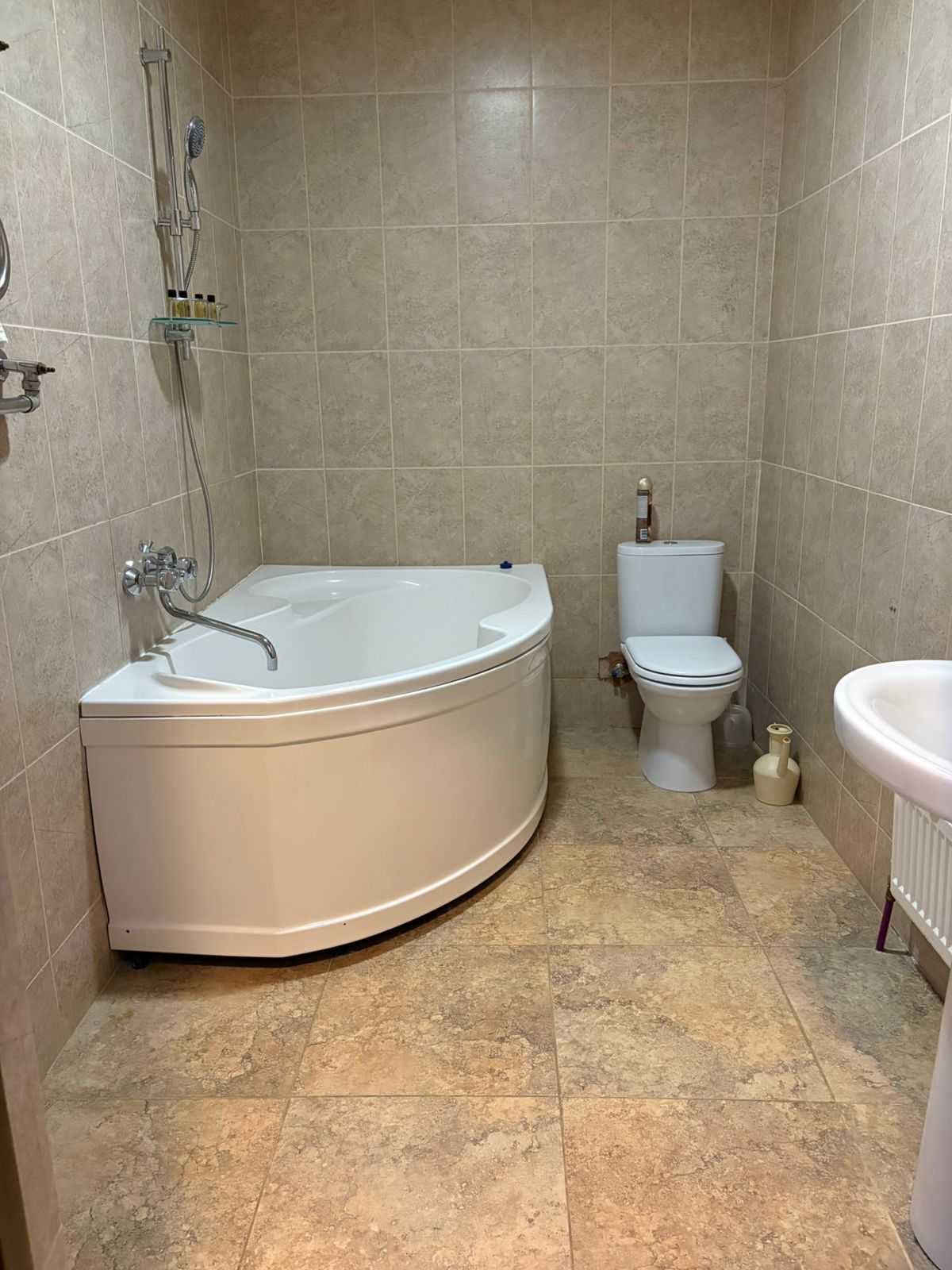 с ванной: ; туалетные принадлежности: ; фен: ;