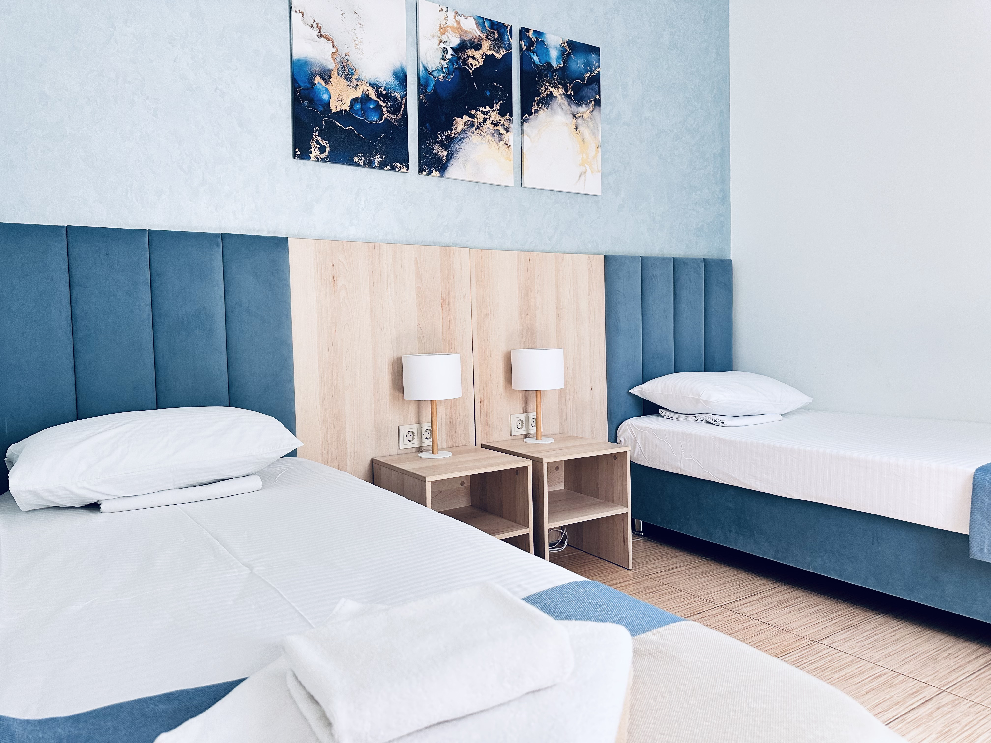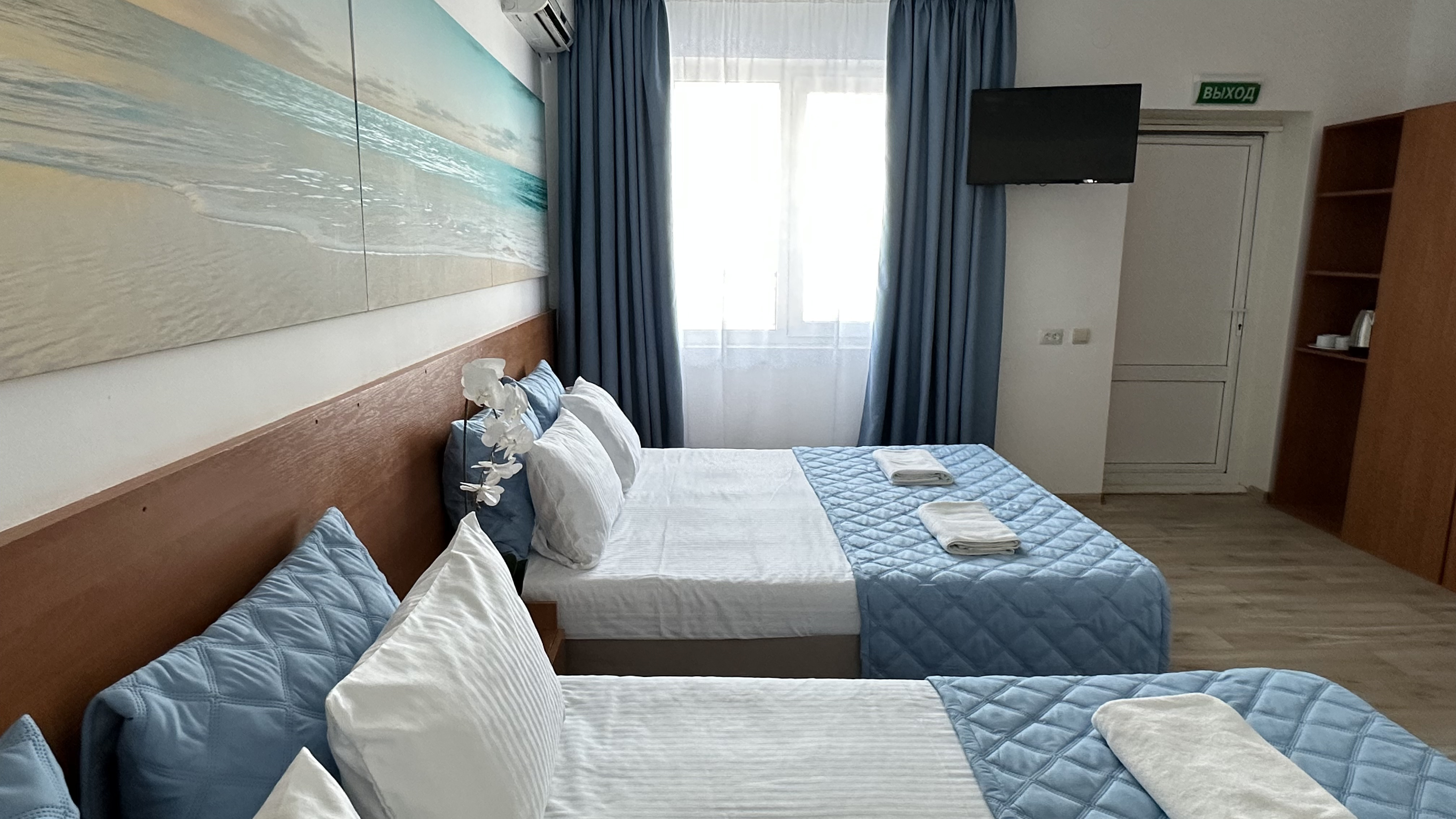 - Стандарт. 3-местный 2-комнатный. Осн. мест: 3. Доп. мест: 1.
