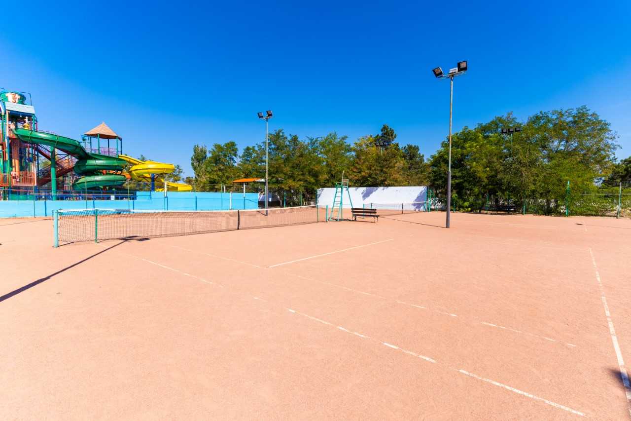 На территории работают столовая и летнее кафе. В распоряжении отдыхающих 6 аквазон: открытый бассейн с водными горками, открытый бассейн с лаунж зоной, большой аквапарк «Остров Сокровищ», бассейн с детскими горками, крытый бассейн, бассейн на пляже. Также к услугам гостей спа-центр, предлагающий различные косметические процедуры и массаж. Есть велопрокат, зона для игры в бильярд и настольный теннис, уличные спортивные площадки с профессиональным покрытием, тир, работают инструкторы по теннису. Регулярно на территории комплекса для гостей проходят показы кинофильмов, устраиваются концерты и различные развлекательные мероприятия. Можно арендовать велосипеды для прогулок. Для детей устраиваются детские дискотеки, малышей веселят аниматоры, есть игровая комната и уличная площадка с горками, качелями и батутами.