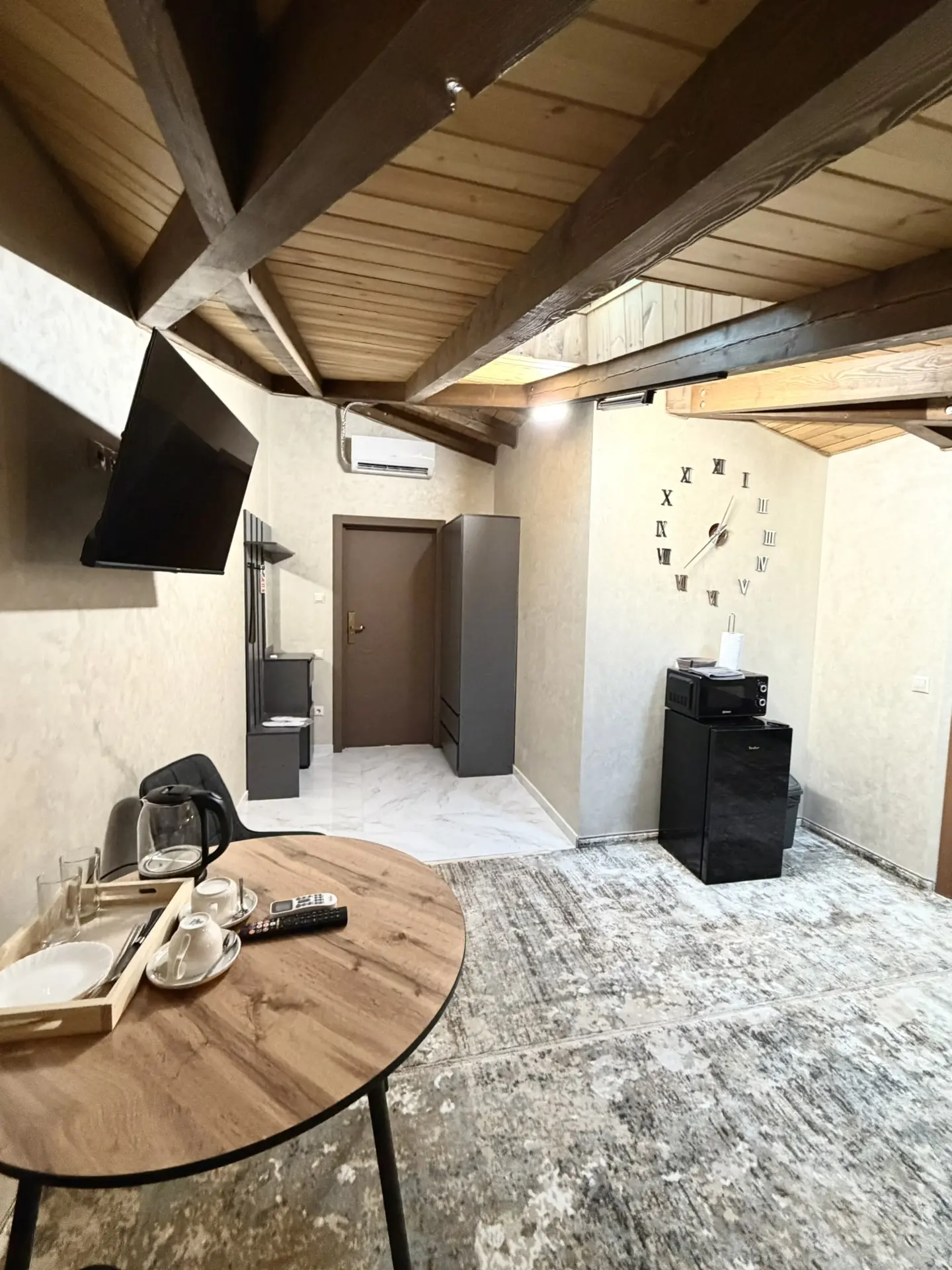 кондиционер: ; микроволновая печь: ; набор посуды: ; сейф: ; телевизор: ; утюг: ; холодильник: ; электрочайник: ;