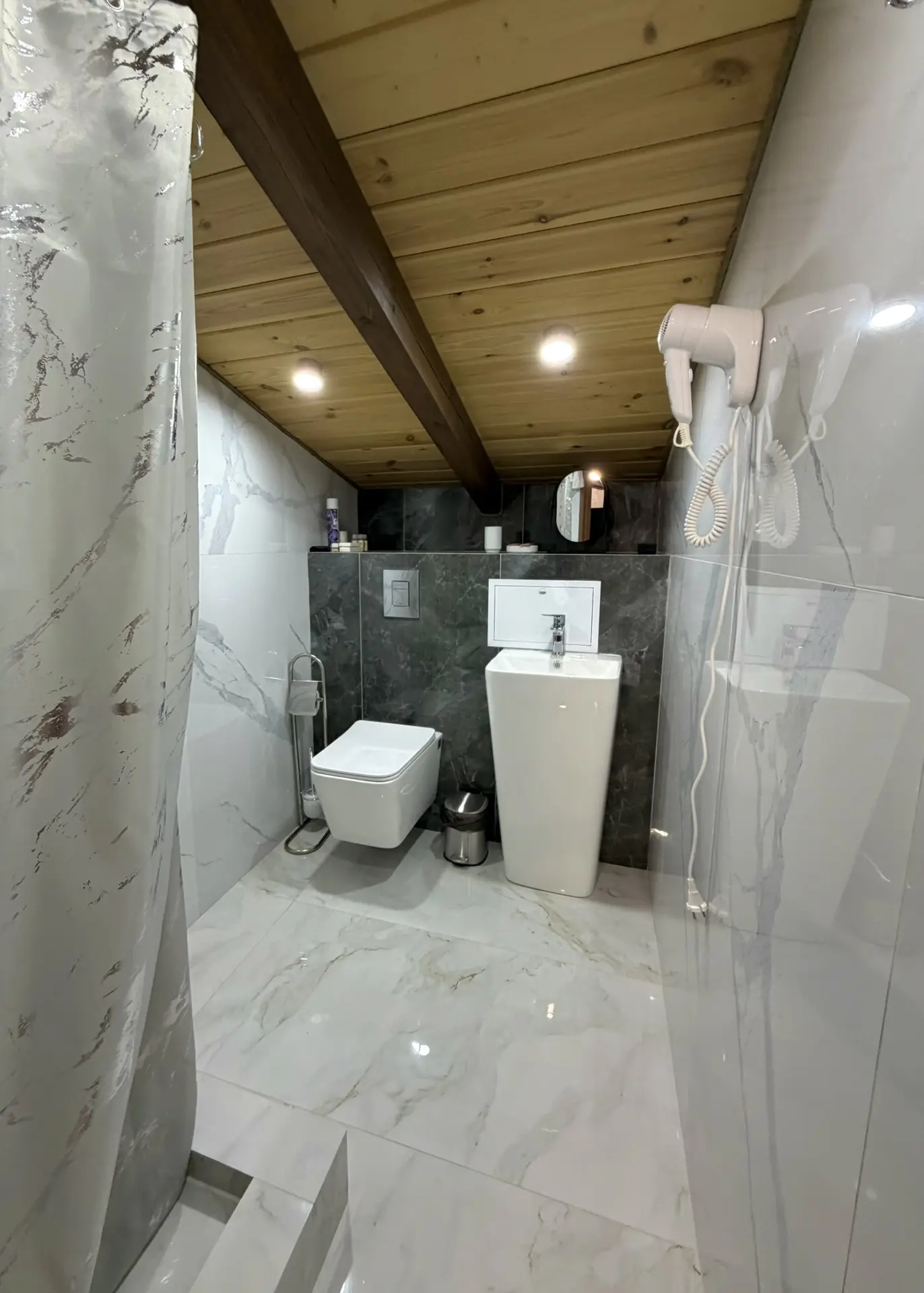 с душем: ; туалетные принадлежности: ; фен: ;