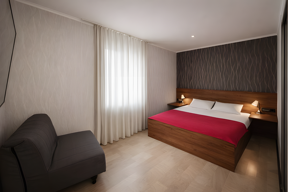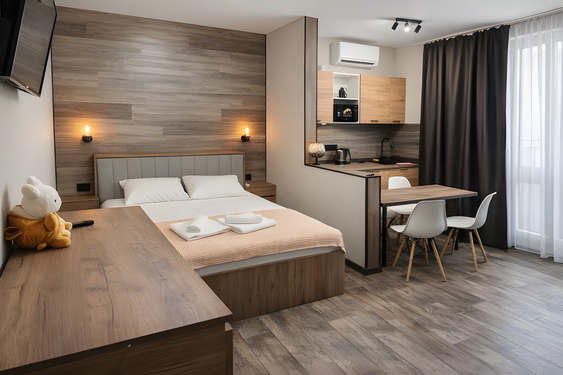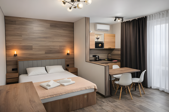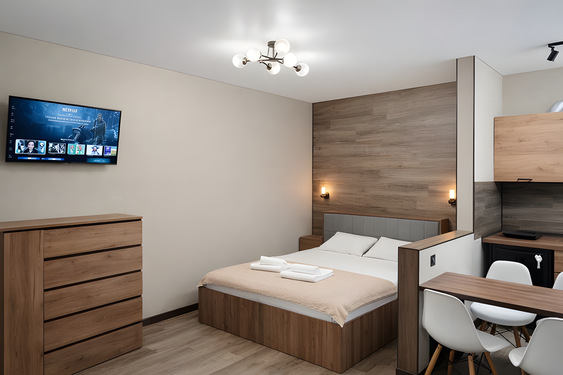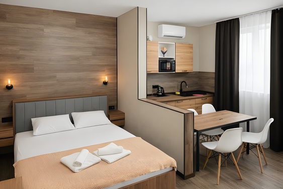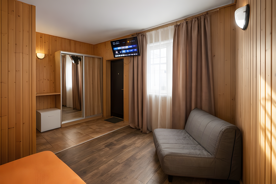 - Стандартный. 4-местный 1-комнатный с доп. местом. Осн. мест: 4. Доп. мест: 1.