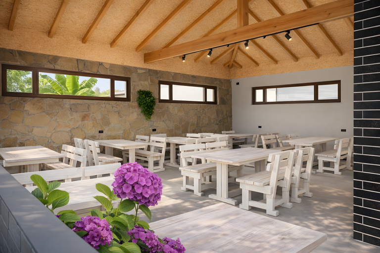 Внутри гостевого дома гостей ждут номера разных форматов — от стандартных двух- и трехместных до вместительных семейных и пятиместных вариантов. В каждом номере работают кондиционер, телевизор и холодильник, есть собственная ванная комната с душем, а также беспроводной доступ к интернету. Ванная комната укомплектована феном, набором полотенец и базовыми гигиеническими принадлежностями. В качестве приятного дополнения — бутилированная вода, а также чай и кофе для тех, кто привык начинать утро с любимого напитка. Часть номеров оборудована собственной кухонной зоной. Территория вокруг дома закрытая, ухоженная и полная зелени — здесь обустроены зоны отдыха с садовой мебелью и мангалом. Для желающих готовить самостоятельно работает летняя кухня. Кроме того, на территории есть общий ресторан, бассейн и спа-зона, а парковка доступна для всех постояльцев.
