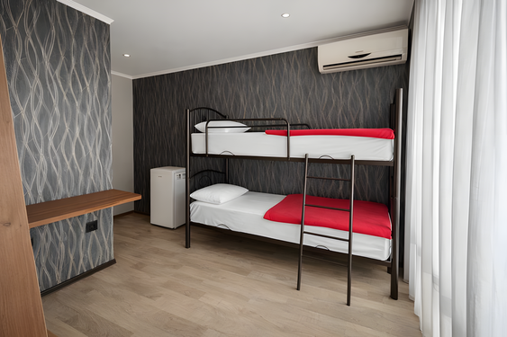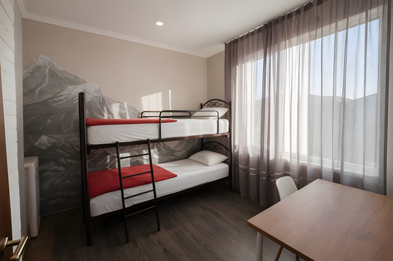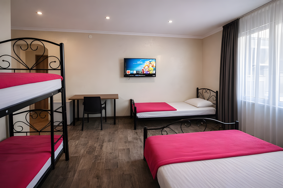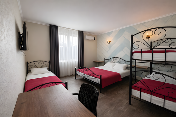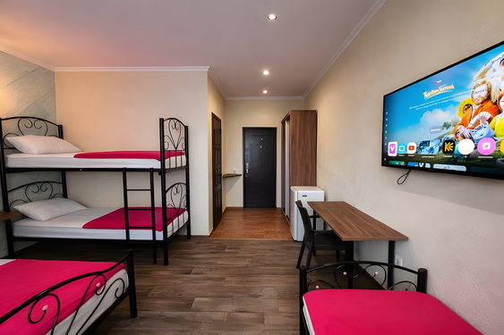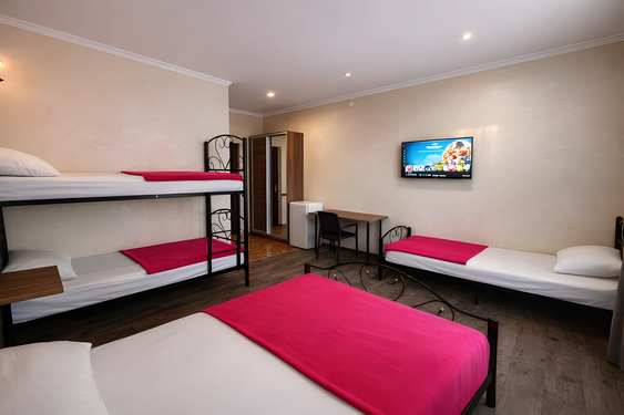 - Семейный. 4-местный с доп. местом и кухней. Площадь: 30-35. Осн. мест: 4. Доп. мест: 1. Всего таких номеров: 2.