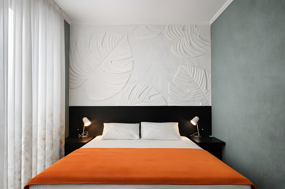 вешалка: ; зеркало: ; кресло-кровать: ; кровать двуспальная: ; прикроватные тумбочки: ; шкаф: ;
