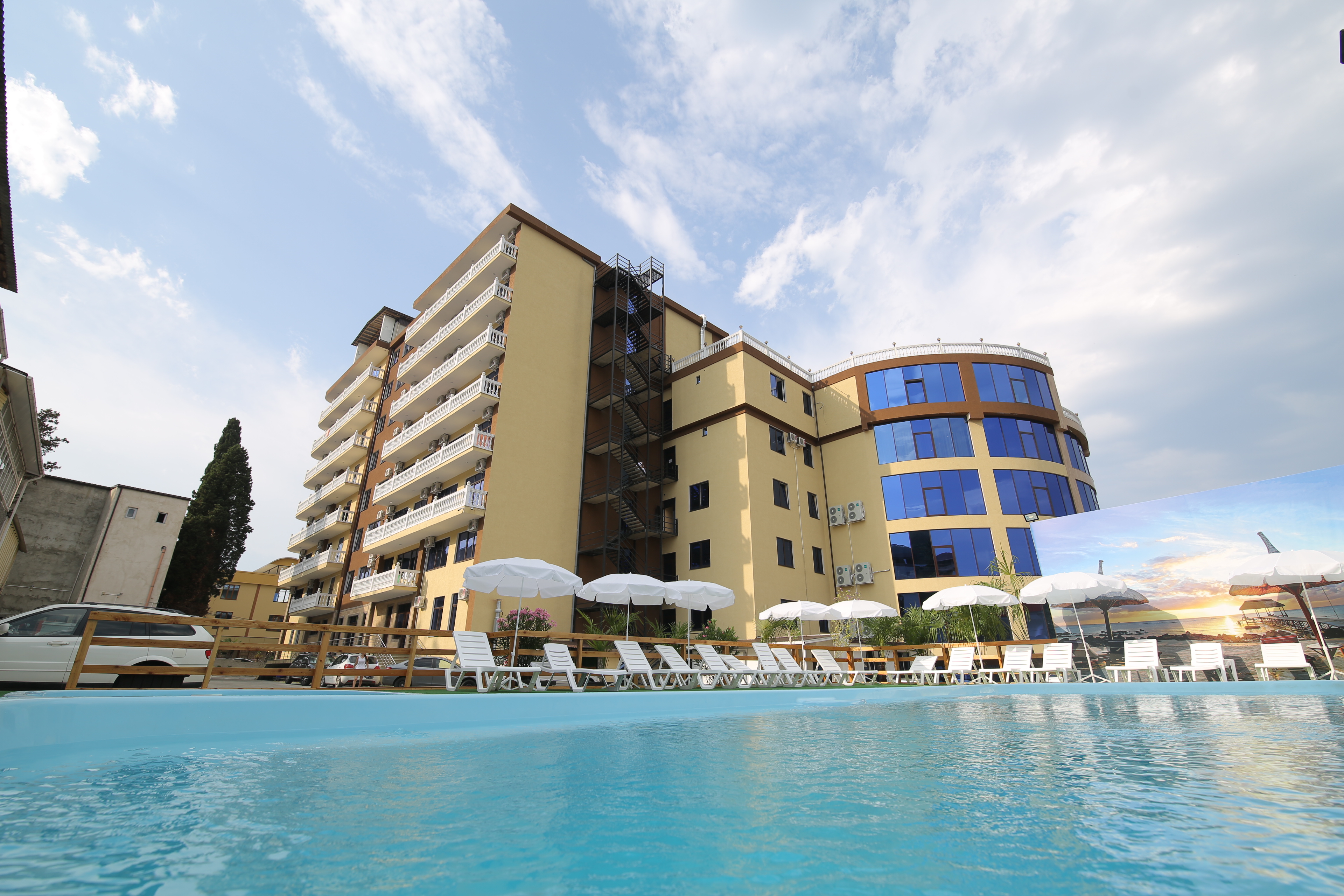 Пансионат имеет собственную парковку, здание отеля располагает солидным номерным фондом. Все номера оборудованы удобной мебелью и необходимой техникой, создающей максимальное удобство. На этажах есть меблированные террасы с панорамным видом на округу.
