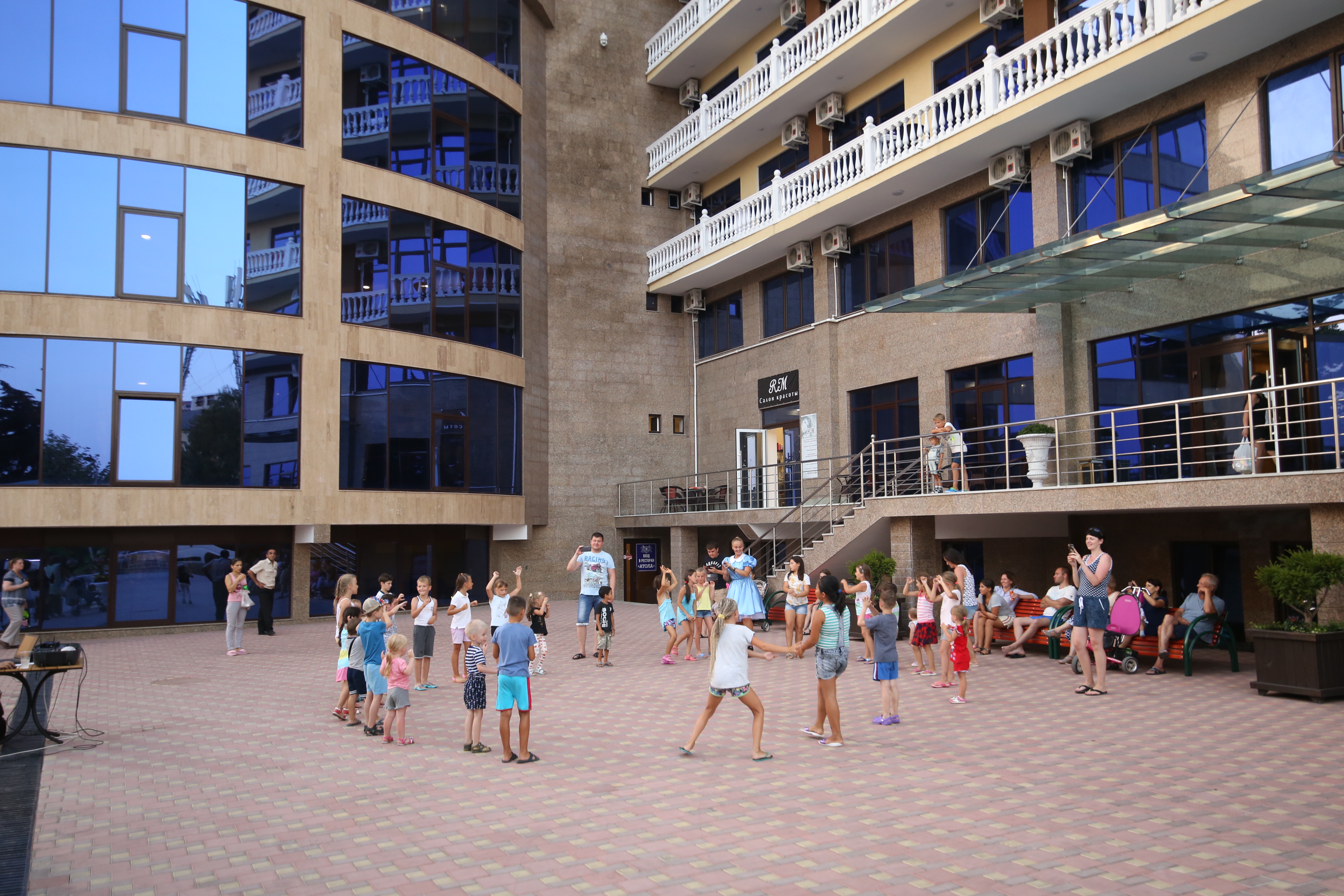 - летнее кафе: в корпусе, европейская/кавказская кухня, 08:00-23:00;