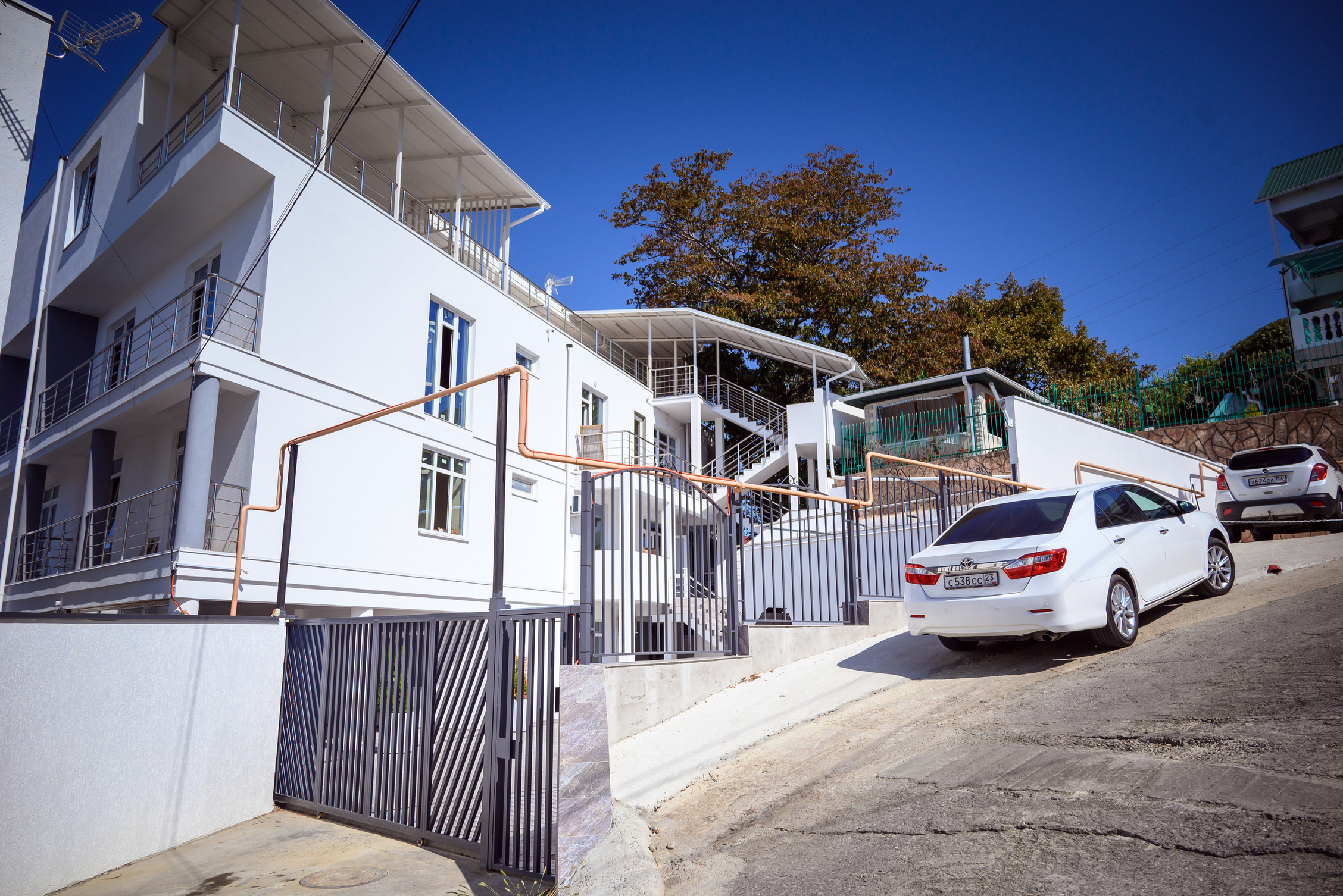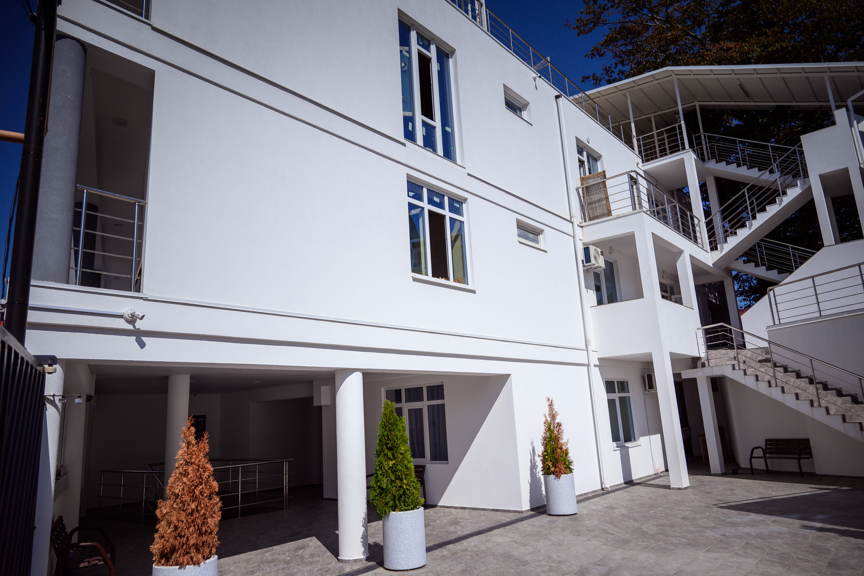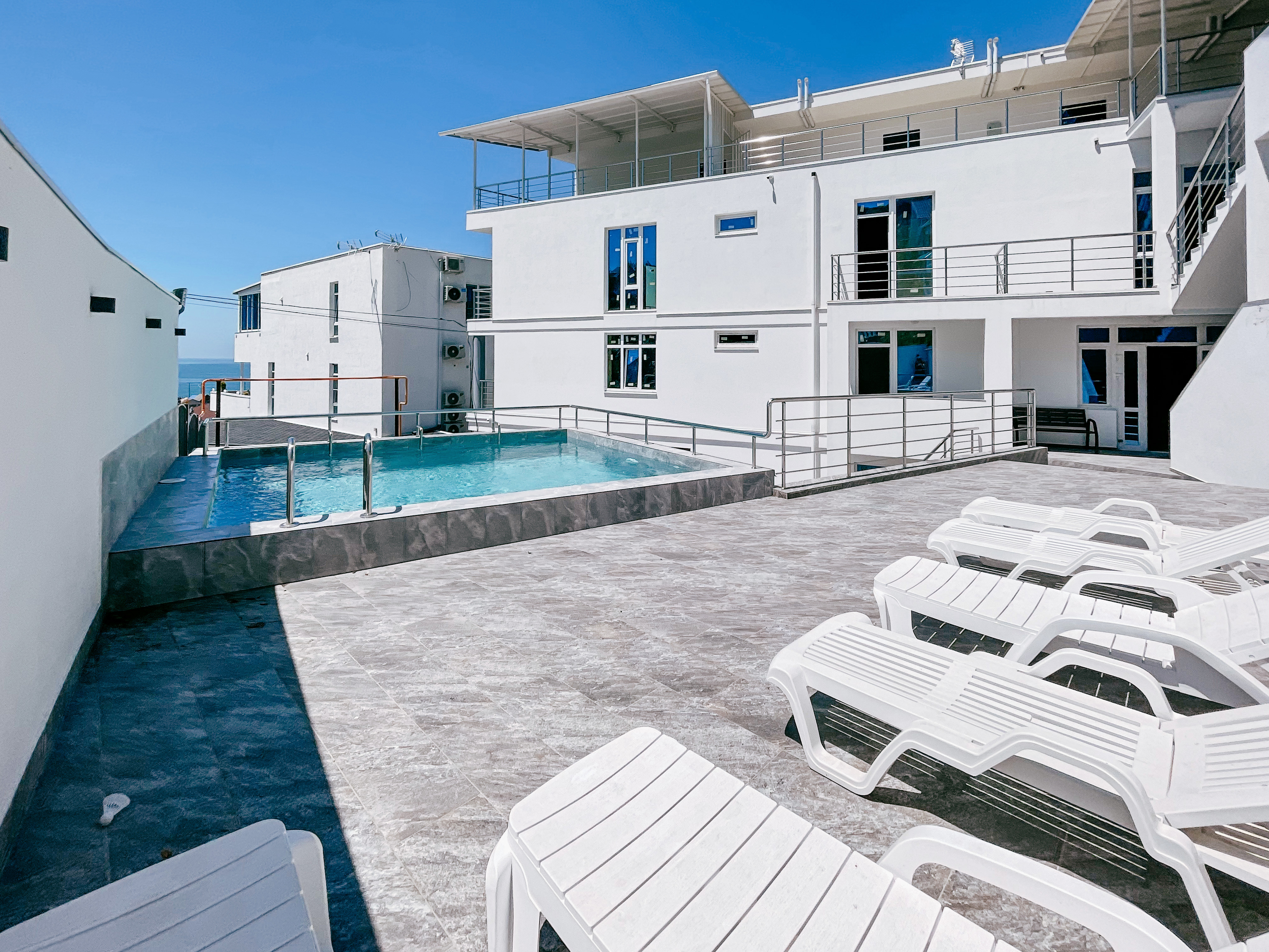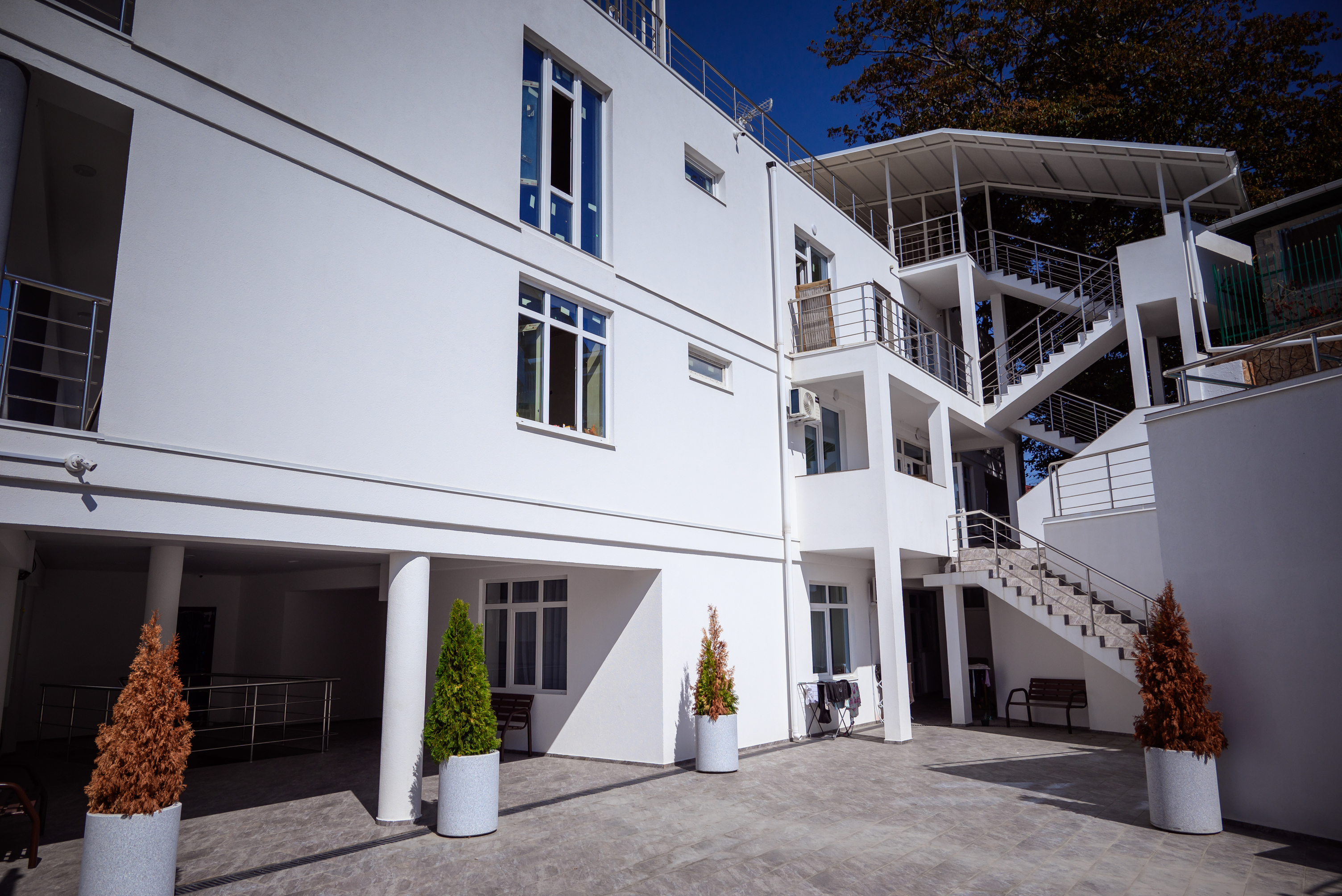Современный белоснежный корпус отеля занимает закрытую территорию в 350 метрах от побережья. В распоряжении гостей комфортабельные номера разные по площади и вместимости. В каждом номере предусмотрена ванная комната, есть кондиционер, плазменный телевизор, вместительные Апартаменты оснащены кухней.