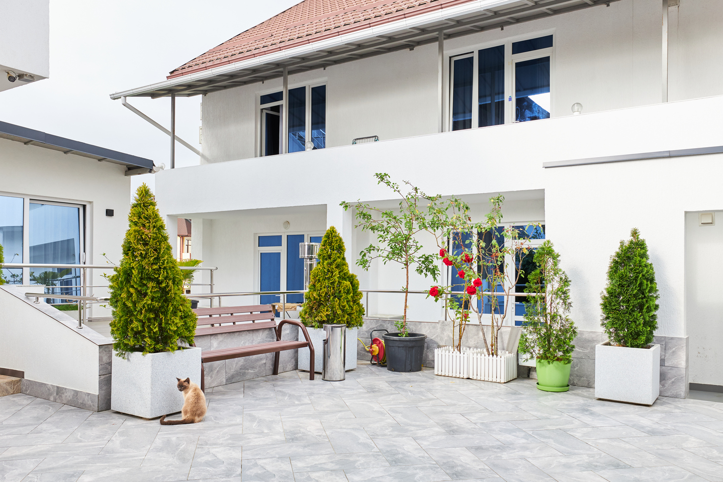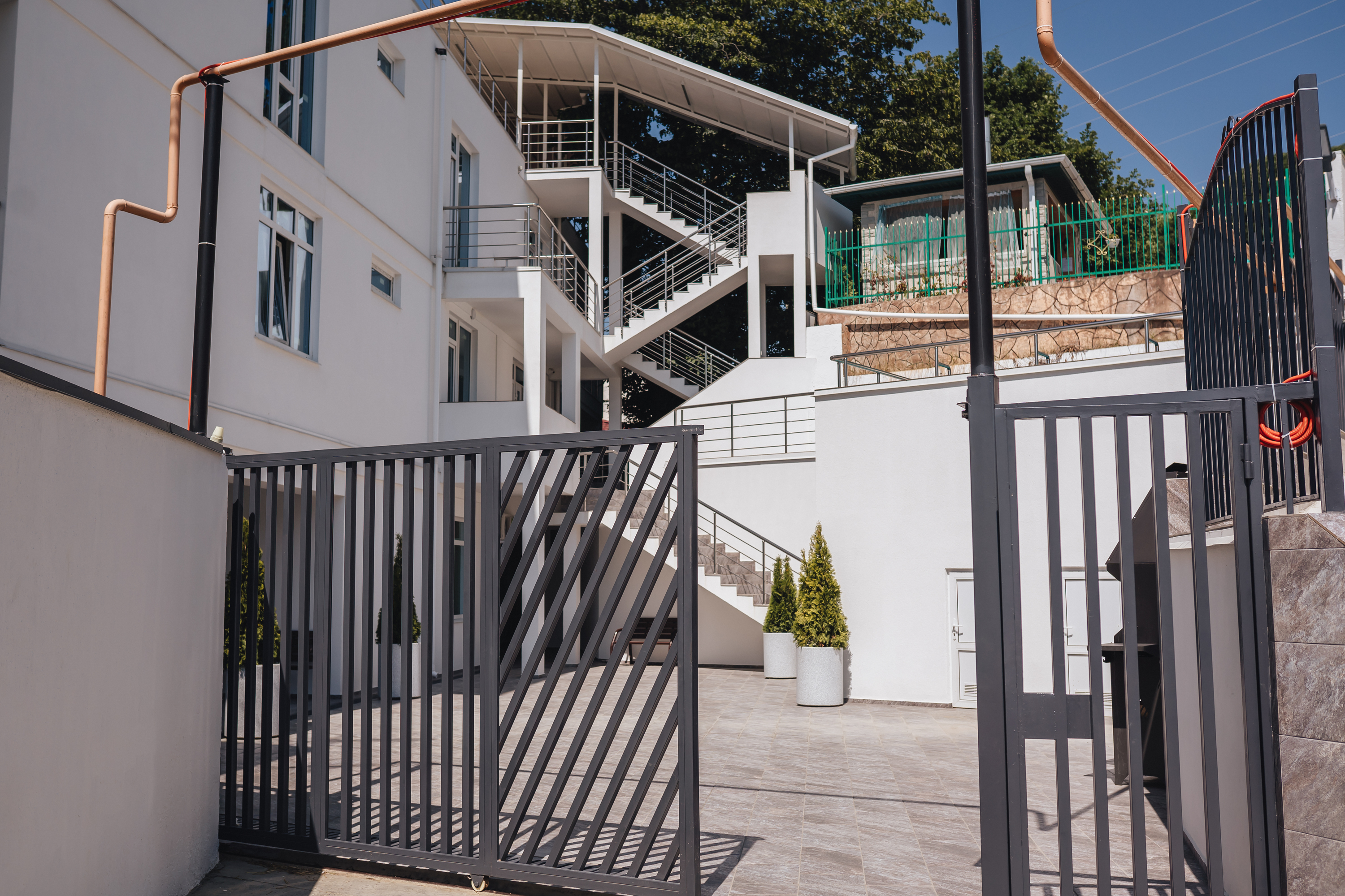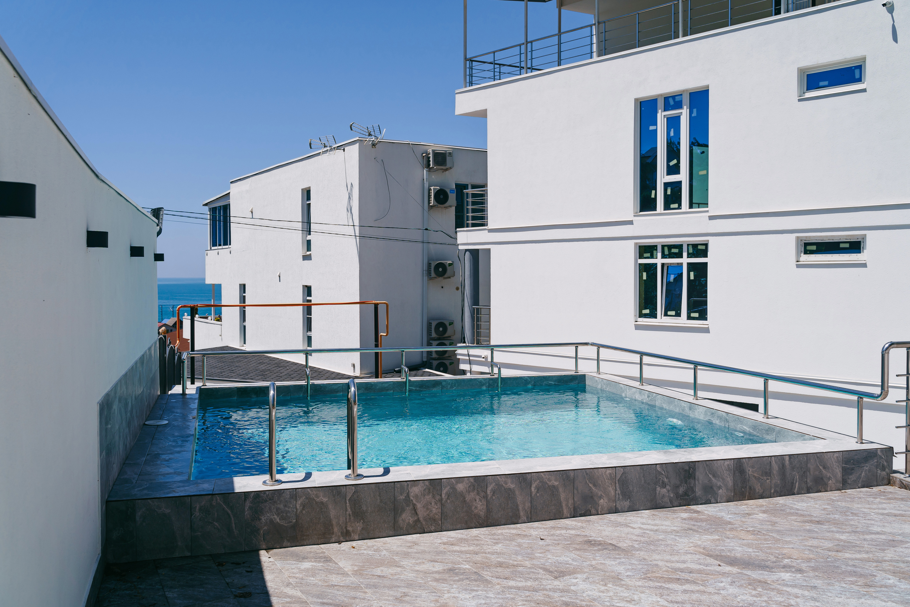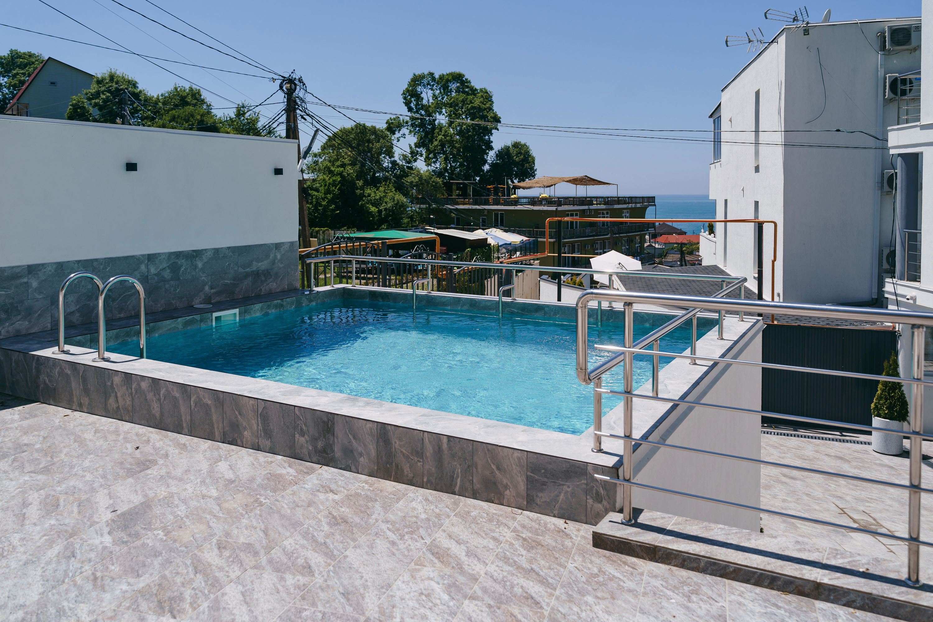 Современный белоснежный корпус отеля занимает закрытую территорию в 350 метрах от побережья. В распоряжении гостей комфортабельные номера разные по площади и вместимости. В каждом номере предусмотрена ванная комната, есть кондиционер, плазменный телевизор, вместительные Апартаменты оснащены кухней.